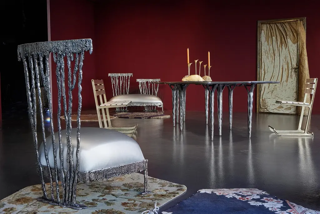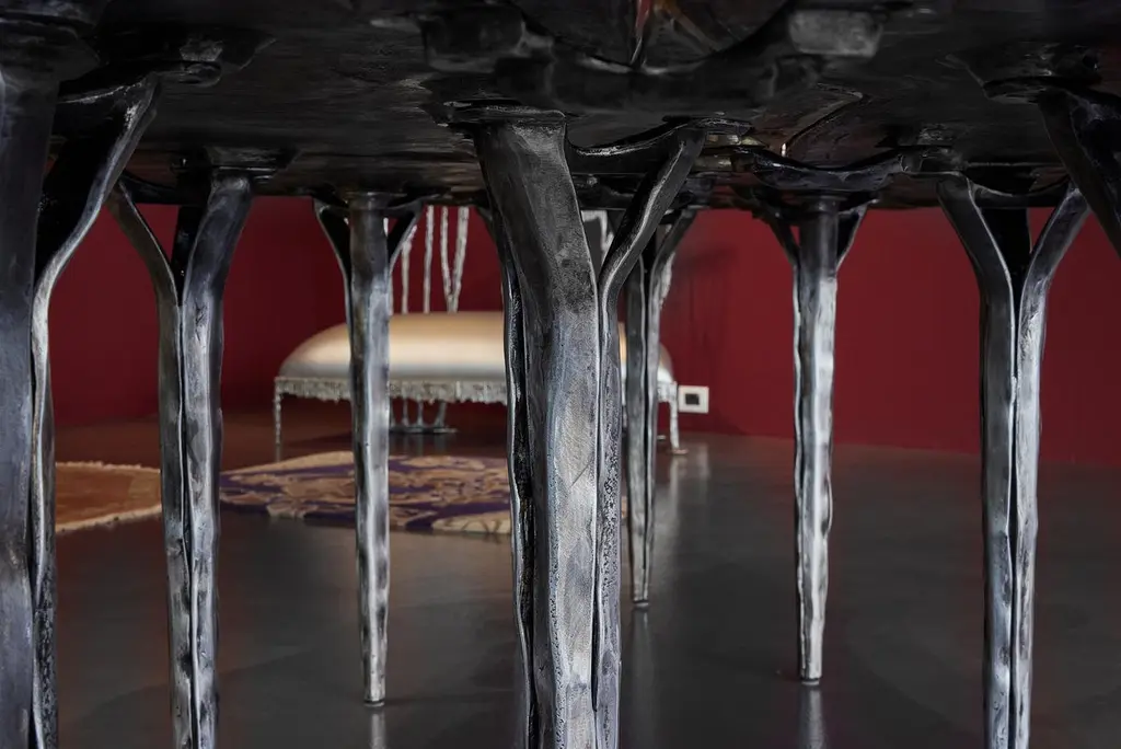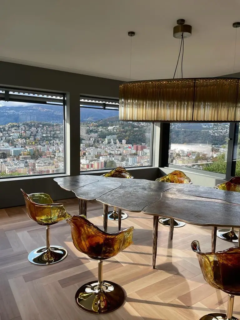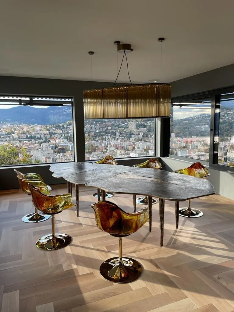 This table was presented during the design week 2023 in Milan, designed by a Naples designer Vincenzo Oste. "The table becomes like a place of sinuous fusions, made up of promontories and landscapes, in a journey between the ordinary and the extraordinary".[Vincenzo Oste]Table made of cast aluminium and bronze, realized with the ancient technique of sand casting. Entirly hand made by the designer.The table can have a bespoke size and ca be made in all cast aluminium or all in cast bronze or mix the two techniques (price vary).Its suitable also for outdoor with an extra transparent layer on top (cost to add).Size: cm 320x 155 x 73 H.