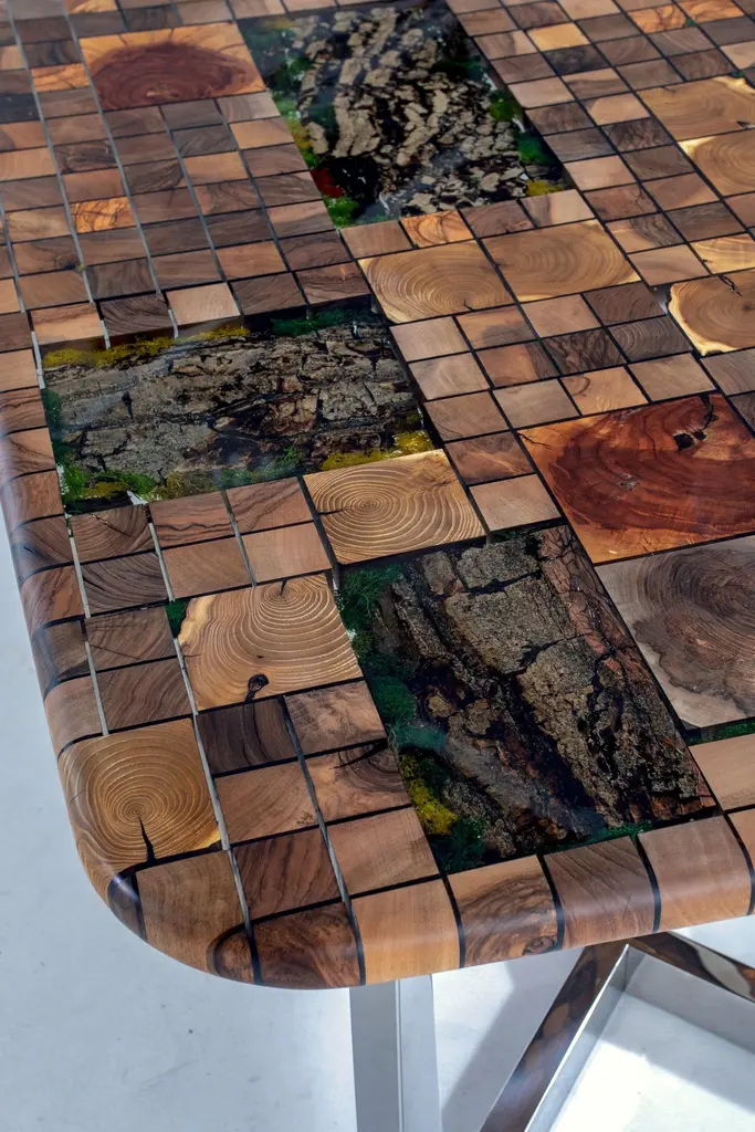 Forest Design Custom Clear Epoxy Resin Dining Table This table is made of 5 different pieces of wood. The grains and texture of the woods describe what a forest looks like.It can be used as a dining table or as a conference table. Suitable for indoor use.All of our tables are made of from natural woods. Therefore, each one has to be different with its own unique shape. The epoxy used in the production of the table has been appreciated by all our customers so far with its transparency. The epoxy color can be matt or glossy.The table legs are made of metal sheet. We have different leg options. The table legs can be made as you wish.
