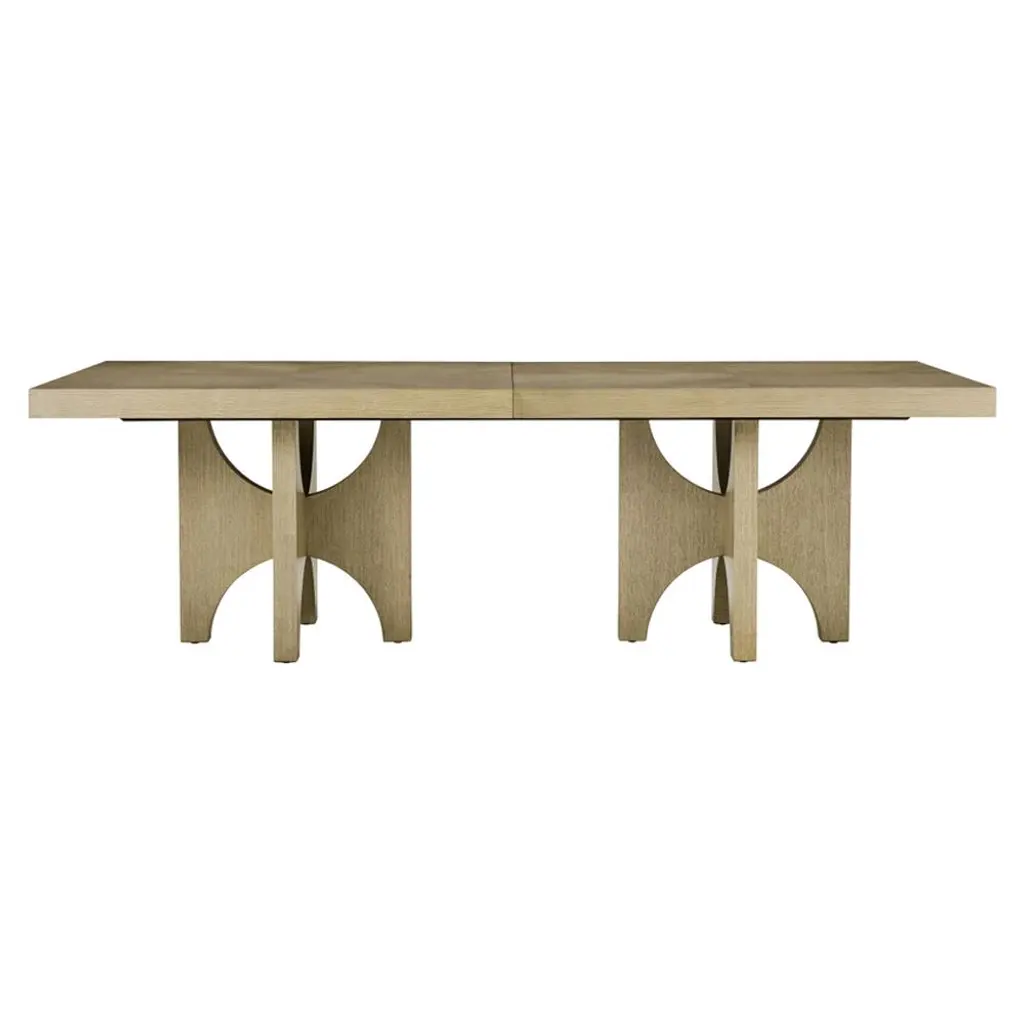 Modern Dark Ash Dining Table, crafted from premium-figured cathedral ash in the Earth finish, this dining table boasts a rich texture and a sleek, light finish that adds a touch of elegance to any dining room. Extending from 97" to 133" you can enjoy seating for up to 12 people. This modern versatile dining table has a casual coastal feeling and comes with two 18 inch leaves.Open dimensions: 133" x 44" x 30" HClosed dimensions: 97" x 44" x 30" H