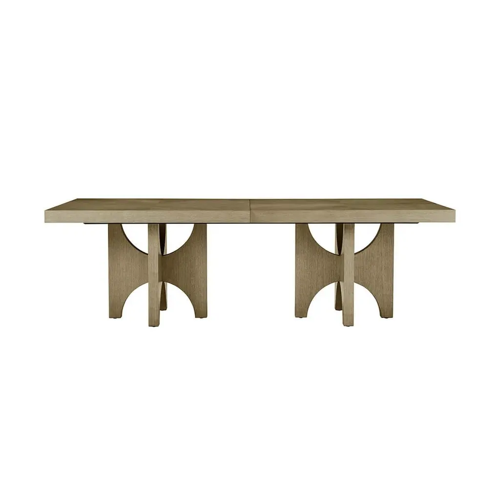 Modern Light Ash Dining Table, crafted from premium-figured cathedral ash in the Dune finish, this dining table boasts a rich texture and a sleek, light finish that adds a touch of elegance to any dining room. Extending from 97" to 133" you can enjoy seating for up to 12 people. This modern versatile dining table has a casual coastal feeling and comes with two 18 inch leaves.Open dimensions: 133" x 44" x 30" HClosed dimensions: 97" x 44" x 30" H