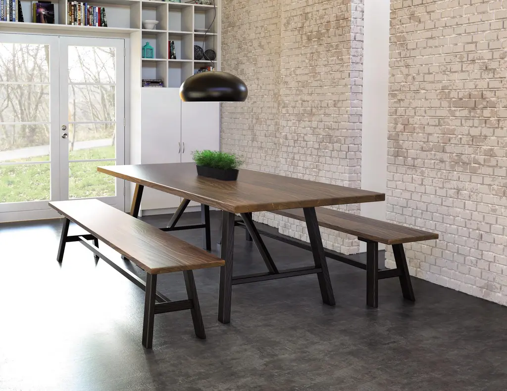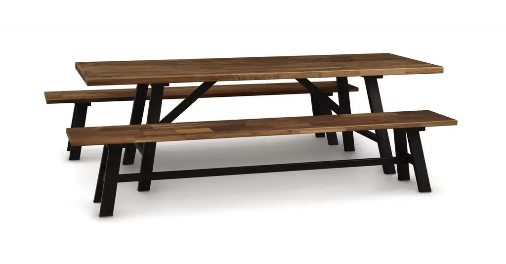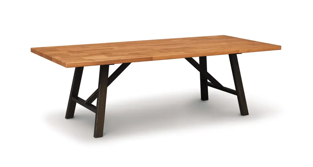 The Essentials Farm Table features seared Ash hardwood legs. The Essentials Farm Table is crafted in solid, American black walnut or natural cherry hardwood and features seared Ash hardwood legs. The Moderns Farmhouse Dining Table comes from a series of occasional tables, dining tables, desks and chair in classic mid-century modern styling. Modern Farmhouse Tables and Chair utilize recovered wood, including a range of size, natural markings and coloration, resulting in solid hardwood surfaces with significant character and interest. A special offering, the Modern Farmhouse Tables and Chair both celebrate the character and uniqueness of each tree and demonstrate Copeland Furniture’s ongoing commitment to environmental sustainability. The Modern Farmhouse Table features seared Ash hardwood legs. The Modern Farmhouse Bench is crafted in solid American black walnut OR North American cherry and features seared Ash hardwood legs. Copeland Furniture began in 1976 after Tim Copeland left his job in wholesale lumber sales and began to build products, on contract, for Gardenway Research, a mail order catalog. Originally named T. Copeland & Sons, the company began as a one man operation located in a small garage on family property in South Corinth, Vermont. While it presents many challenges, there are still certain competitive advantage in domestic manufacturing. The people who build Copeland Furniture are our friends and neighbors. They can relate to the products they build. They take great pride in their jobs and it shows in their workmanship. Our employees work under an incentive program that rewards quality. All employees are empowered to refuse anything that comes to them that is not of acceptable quality. We stand behind our products. If we ship something that isn’t quite right or if it’s damaged in transit, we’ll make sure that your customer gets a perfect product. If it can’t be fixed we’ll make a new one to replace it. Proximity to our customers and Made-To-Order production allows us to offer shortened lead times and choices in knobs, pulls, and finishes.