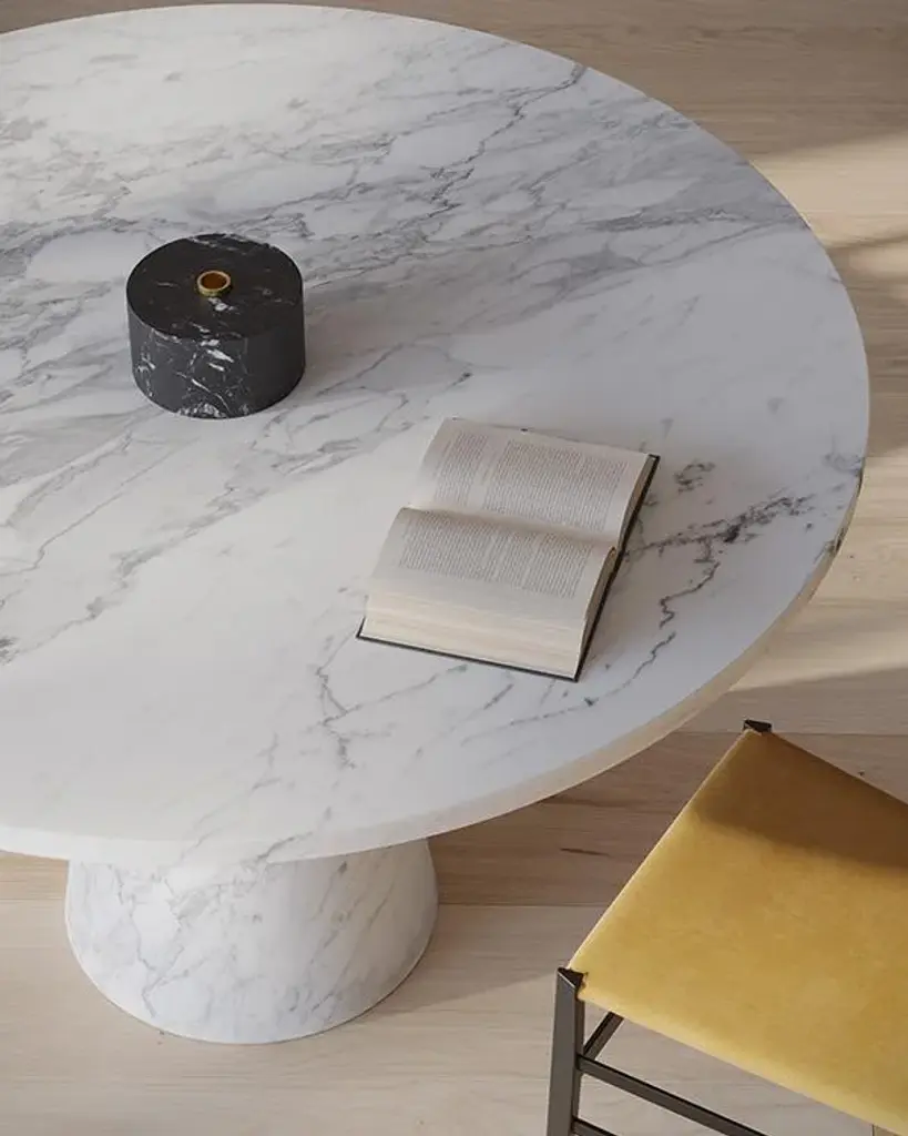 The soul on top An endlessly astonishing design, Inside Out is available as a table and console for the 2021 collection. Karen Chekerdjian presents her chef d’œuvre in two new essential options without losing the added value given by the interchangeable nature of its accessories: ashtray, candle holder and fruit basket, also sold separately. Design accessories that are, in and of themselves, also exquisite items to personalise our surroundings. Always in pursuit of colour which, more than ever before, enhances the purity of the shapes. Size: ⌀ 120 x ⌀ 40 x 74 cm, ⌀ 47.2 x ⌀ 15.7 x 29 in. Commercial name: Inside Out Dining Table, by the Lebanese designer Karen Chekerdjian. Bianco Gioia marble. The accessories are sold separately Made in Italy, hand finished. The item is made to order. Please note that marbles and stones are natural materials, and therefore can differ slightly in appearance - even when coming from the same quarry or the same block. Picture can then differ slightly from purchased item, as every piece is unique.