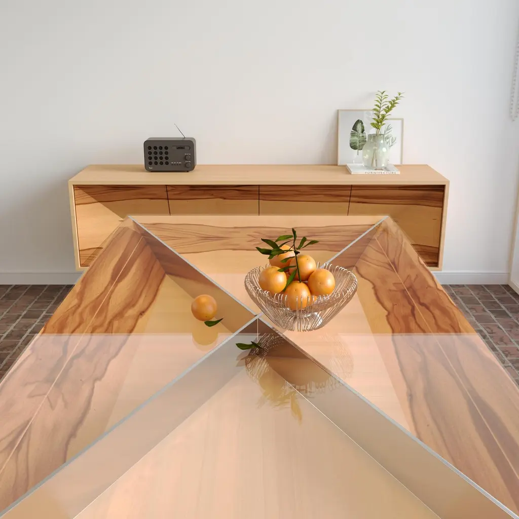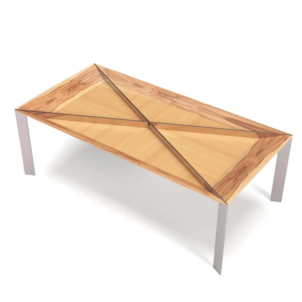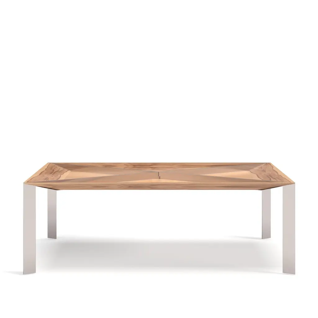 Modern Minimalist Rectangular Dining Table Satinwood & Brushed Stainless Steel