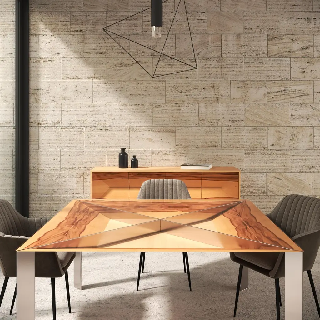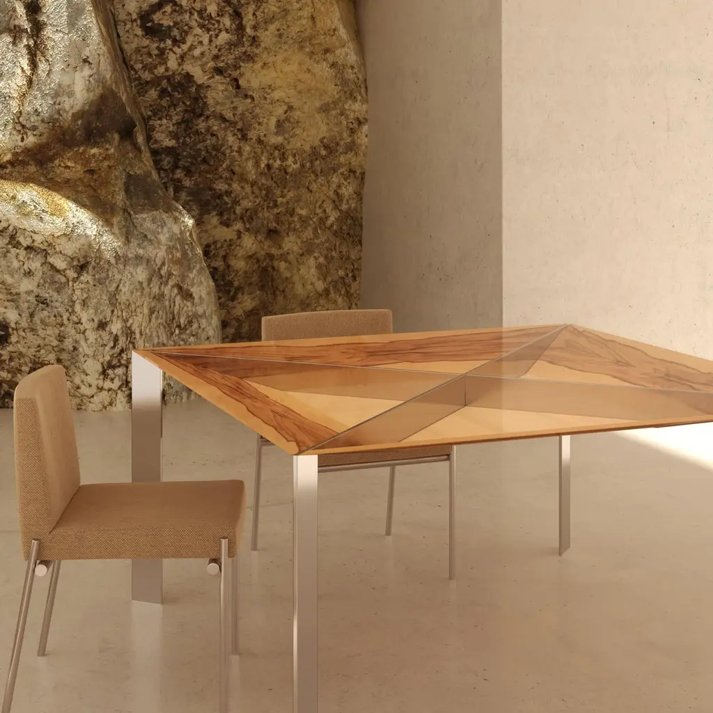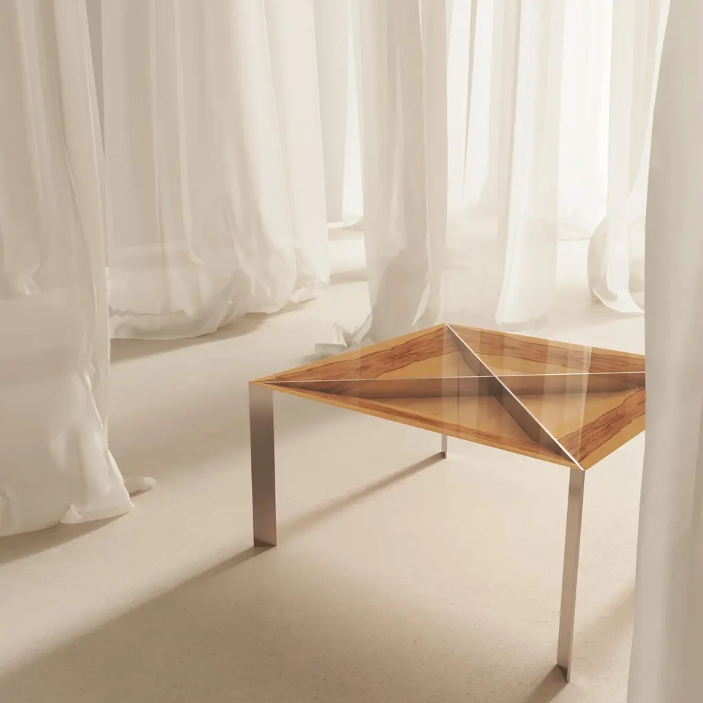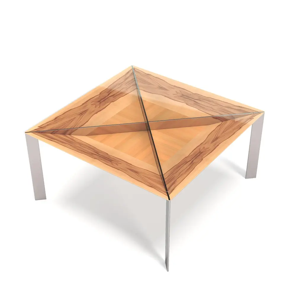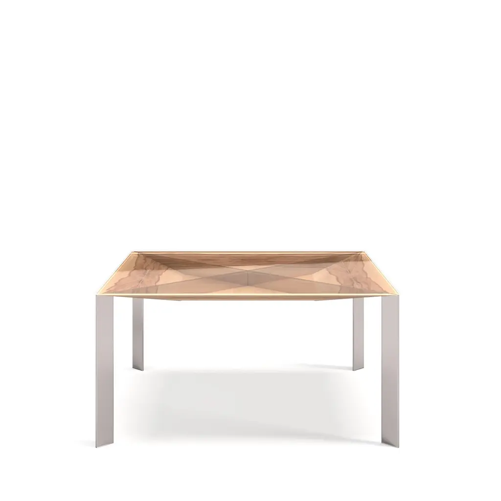 The Square Dining Table Convex is made to last for generations and features exquisite wood veneers that beautifully balance simplicity in form.Tabletop: Satinwood and glass.Legs: Brushed Stainless SteelYou can experience this piece in your space using Augmented Reality on your mobile phone (available in the Convex Collection on our website).The piece needs simple assembly and will be delivered in a wooden box, securely packed with bubble wrap.This piece is entirely made in Portugal and manufactured artisanally. The author carefully executed or supervised every process step in a small workshop context.Labour of love from Portugal.Designer/Author - Joao Faria/Emotional Objects.Manufacturer - Joao Faria/Emotional Objects.At Emotional Objects, we don't follow trends or fashion. Instead, we create distinct and timeless objects with solid ideas and concepts. Every Emotional Object has a meaningful story behind it. Made to last for generations, we proudly see our objects as future furniture classics that will stand the test of time.Working in Portugal with the best artisans, Joao Faria's work is difficult to distinguish between functional and fine art. He uses the finest materials and techniques, but most importantly, he only makes pieces he would want for himself.Art Furniture, Unique, Tailored, Emotional, Truly Yours.