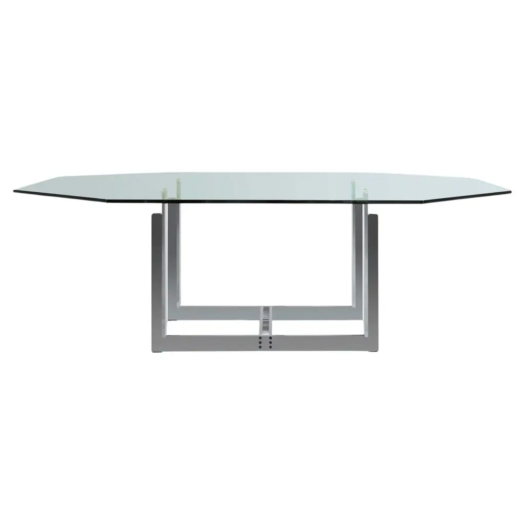 Modern Ron Gilad For Dilmos Rectangular Dining Table Black Iron Base Glass Top
