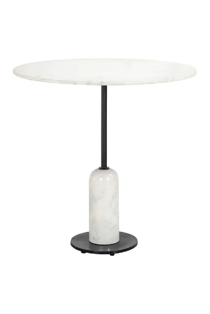 Simple and modern in style, the Dining Table Trevor is well-suited to contemporary interiors. It stands on a black metal pole with a brushed brass base and a round top.
