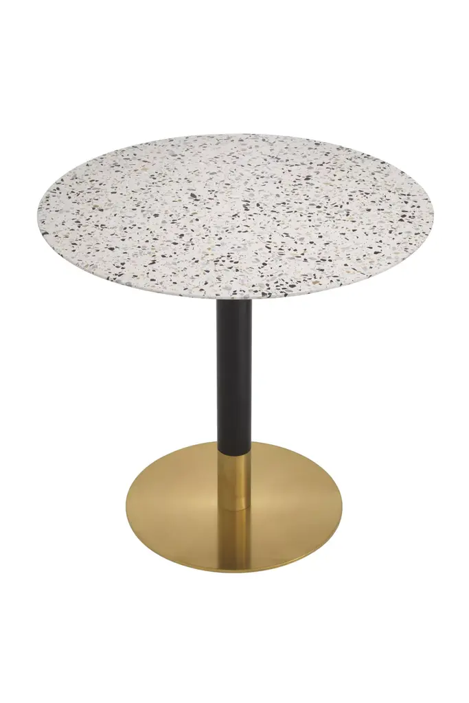 Simple and modern in style, the Dining Table Trevor is well-suited to contemporary interiors. It stands on a black metal pole with a brushed brass base and a round top.