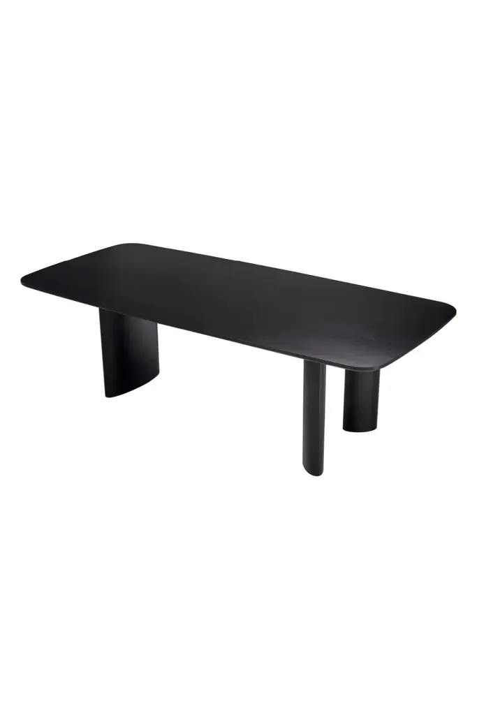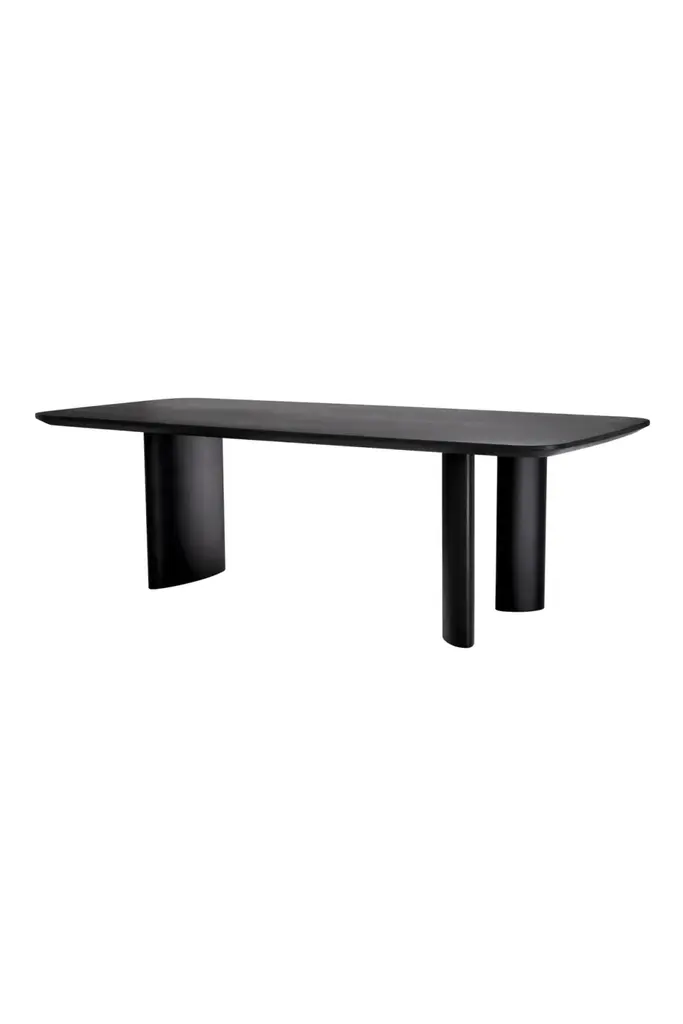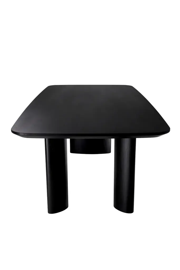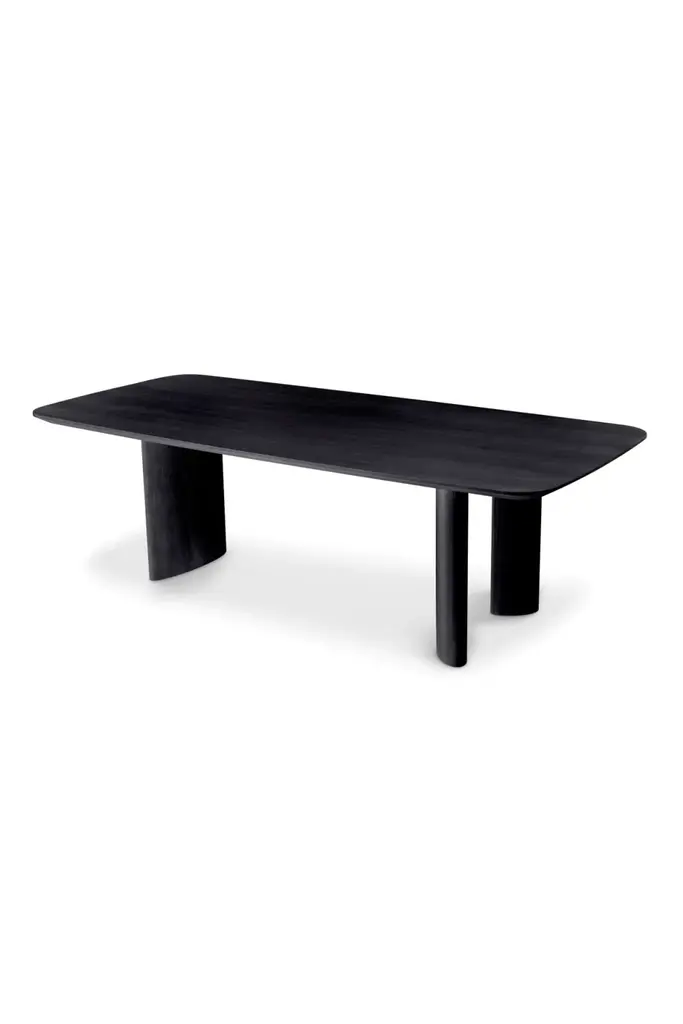 Let your interior harmonize with nature in the loveliest way. Aptly named Harmonie, this dining table by Eichholtz flaunts clean, simple lines made with oak veneer. With its smoothly curved-edged top and three wooden bar legs, it evokes modern minimalist charm that brightens up any dining area.Natural - Black