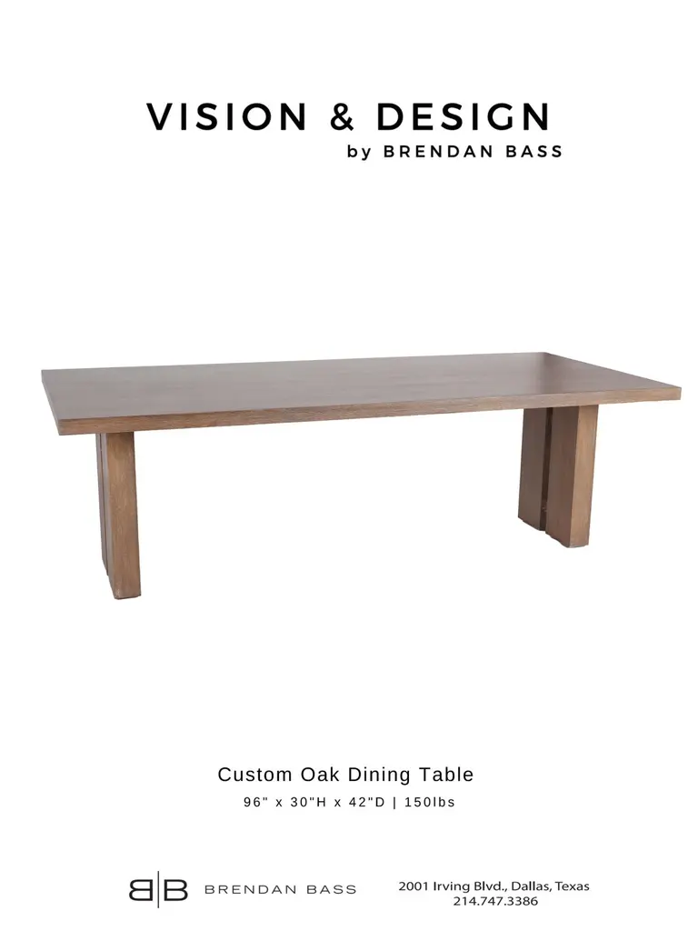 Modernist dining table in Richmond finish top and Onyx finish base. Designed by Brendan Bass for the Vision and Design Collection, by using high quality materials and textures. All materials are sourced from local vendors throughout the state of Texas. The sleek, flowing lines exude a clean, contemporary look that is perfect for today's living spaces. Hand-crafted by Brendan’s select team of highly experienced Artisans, all located in Dallas. Each craftsperson leaves their own unique touch on each piece, making a truly one-of-a-kind piece of art.The Vision and Design experience is hands-on from the beginning. Clients have the ability to adjust all shapes, sizing, and dimensions. Coloring and finish can be customized as well from our deep selection of unique and eye-catching samples. Ranging from high quality stones, water-stained wood, and patinated metals.The price of the listing is representative of the exact piece pictured. If sizing, coloring, or other customization is changed please expect pricing to change accordingly. The current lead time for custom pieces is 10-12 weeks.