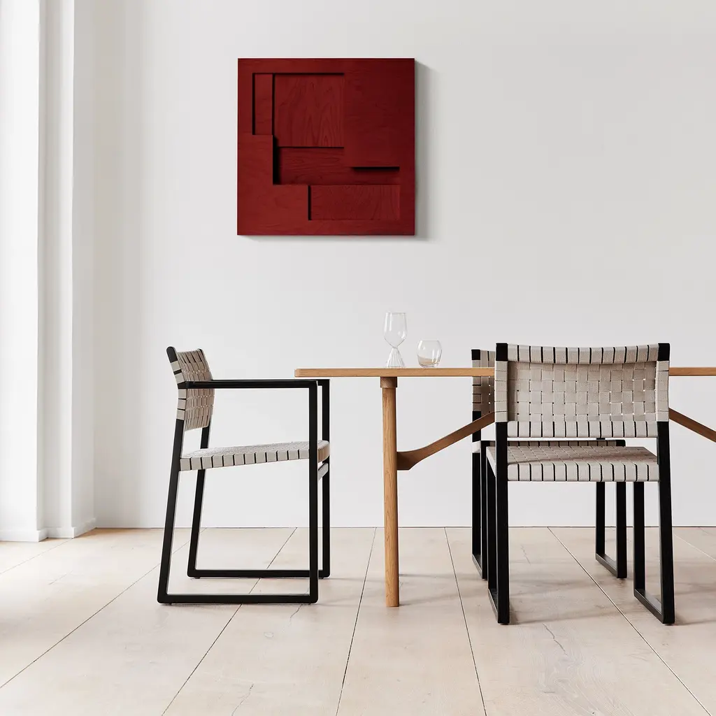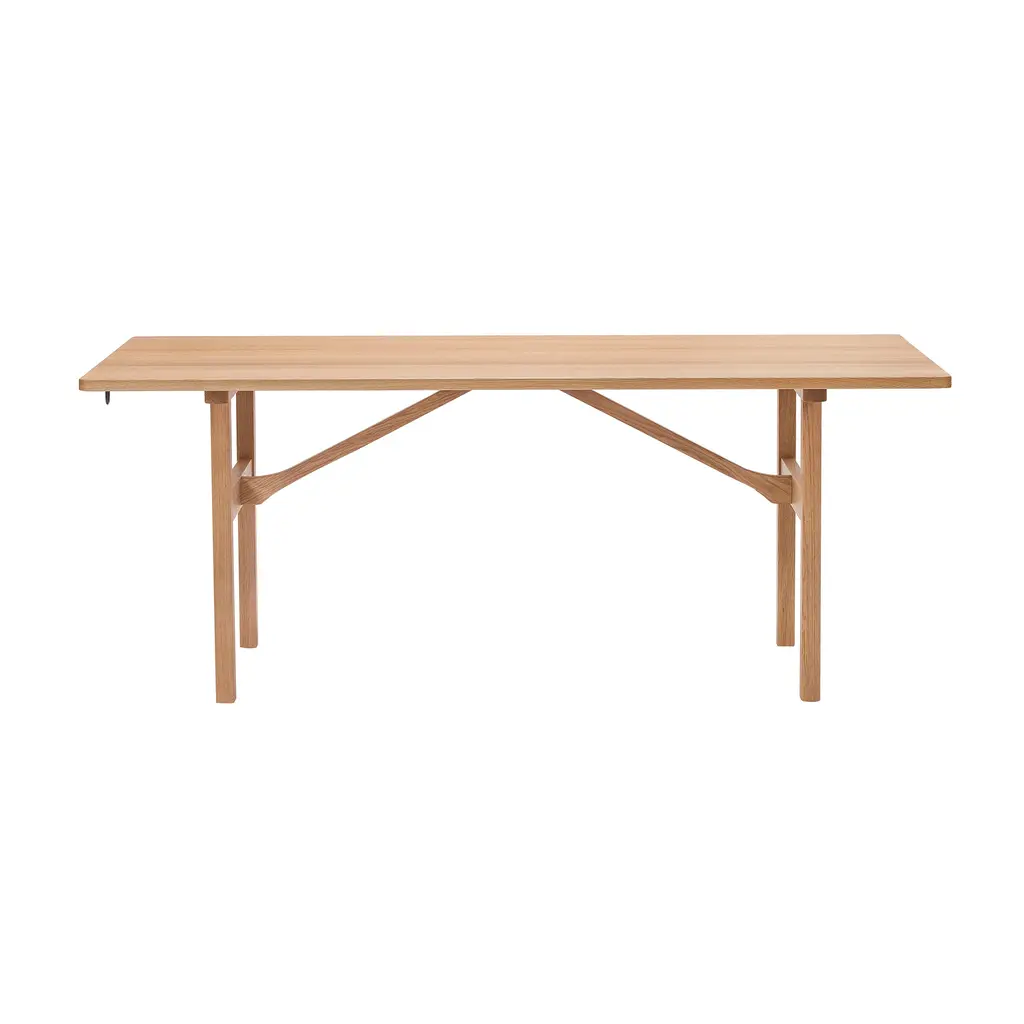 Børge Mogensen’s 6284 Table from 1958 embodies his desire for longevity in a restrained aesthetic, made from the finest selection of solid oak available in a variety of finishes. Inspired by the functional, utilitarian approach of the Shaker movement, his aim was to create beautiful, distinctive furniture by emphasizing simple horizontal and vertical lines and surfaces. That restrained manner imbues the structural beauty of the versatile table’s angled leg support and joinery with a modest appearance intended to create a sense of tranquillity.