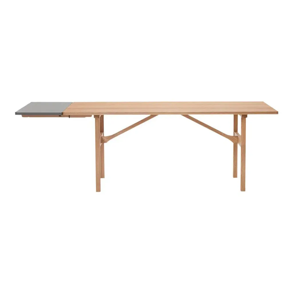 Designed in 1958, this dining table is constructed from the finest selection of solid oak. Also available with additional plates extending the tabletop by 15.8" (40 cm) at each end.