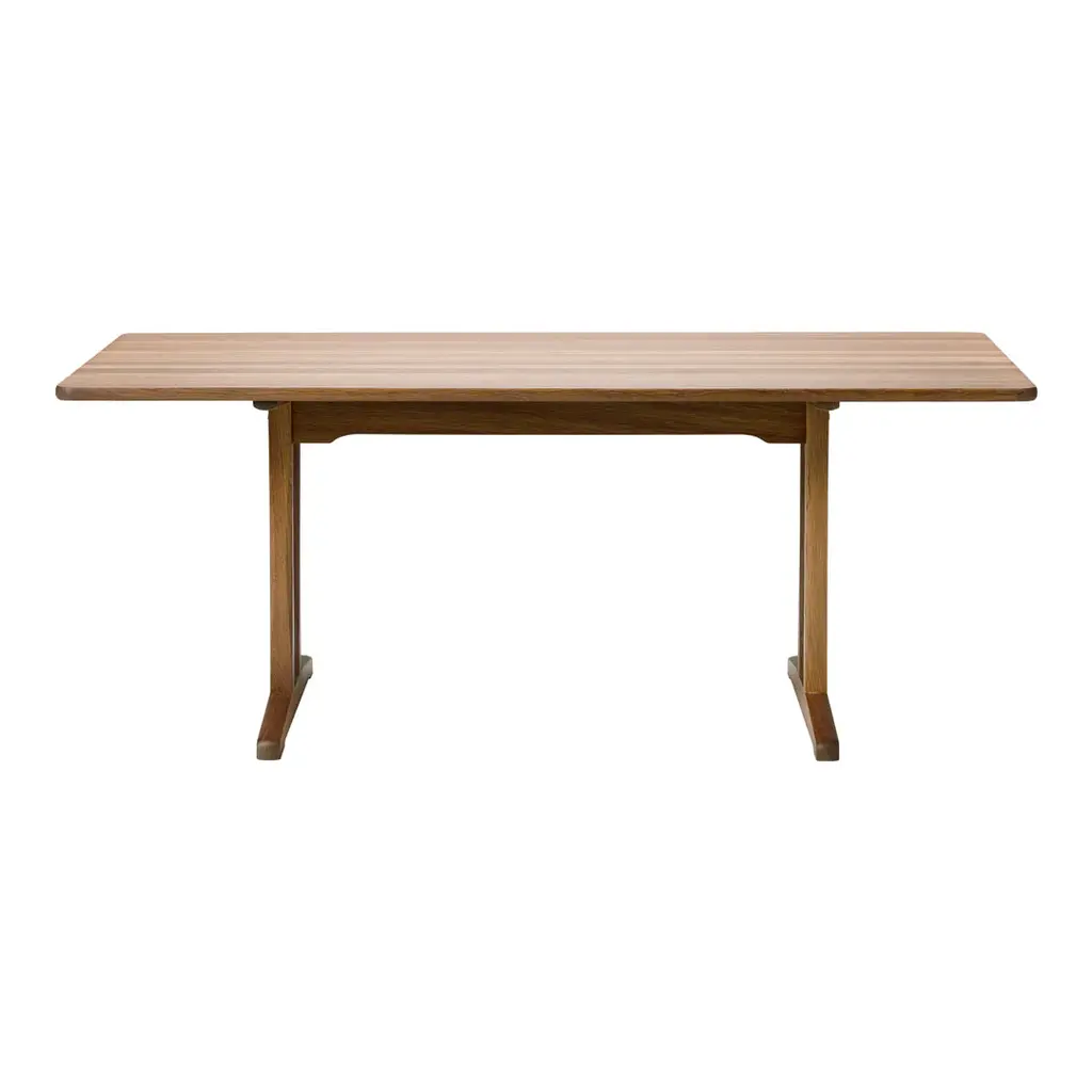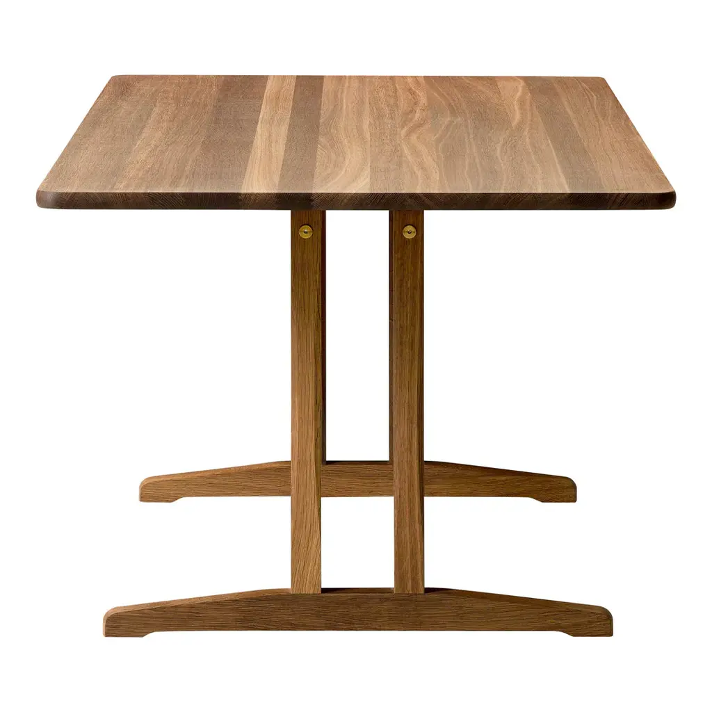 Clean lines akin to classic Shaker styles set the stage for a beautiful, durable table for dining or meetings, allowing for any chair width. Sculpted legs meet elegantly arched feet in this solid oak table crafted to last. The current C18 measures 140/180 in length and the new version measures 220 cm. Inspired by traditional Shaker tables, Mogensen designed C18 in 1947 as a durable table for everyday use. Available with additional plates extending the table top by 40 cm at each end.