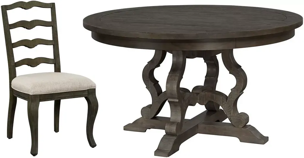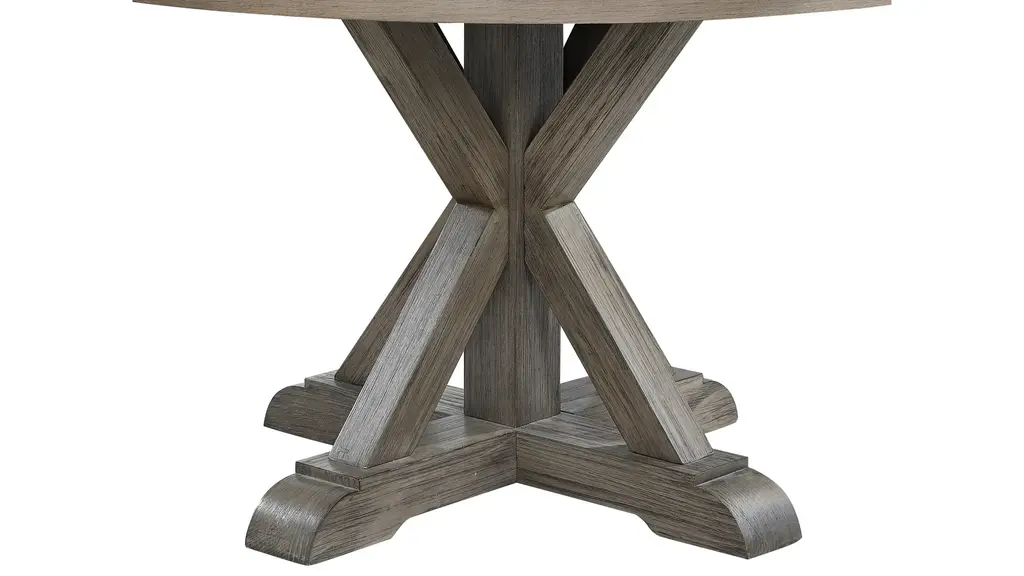 Molly Dining Table is contemporary lodge styling creates a grand statement in a cozy dining table. Architectural styling elements such as the timber-beam pedestal base on the table create warmth and visual appeal complemented by the contemporary grey washed finish. Upholstered chairs make the collection as comfortable as it is stylish.