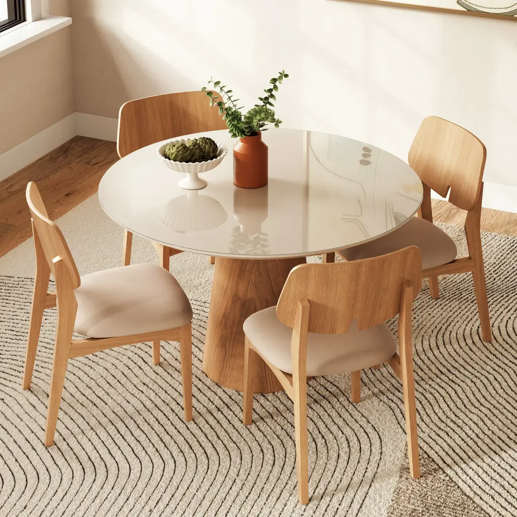 Mona Round Dining Table With Glass Top