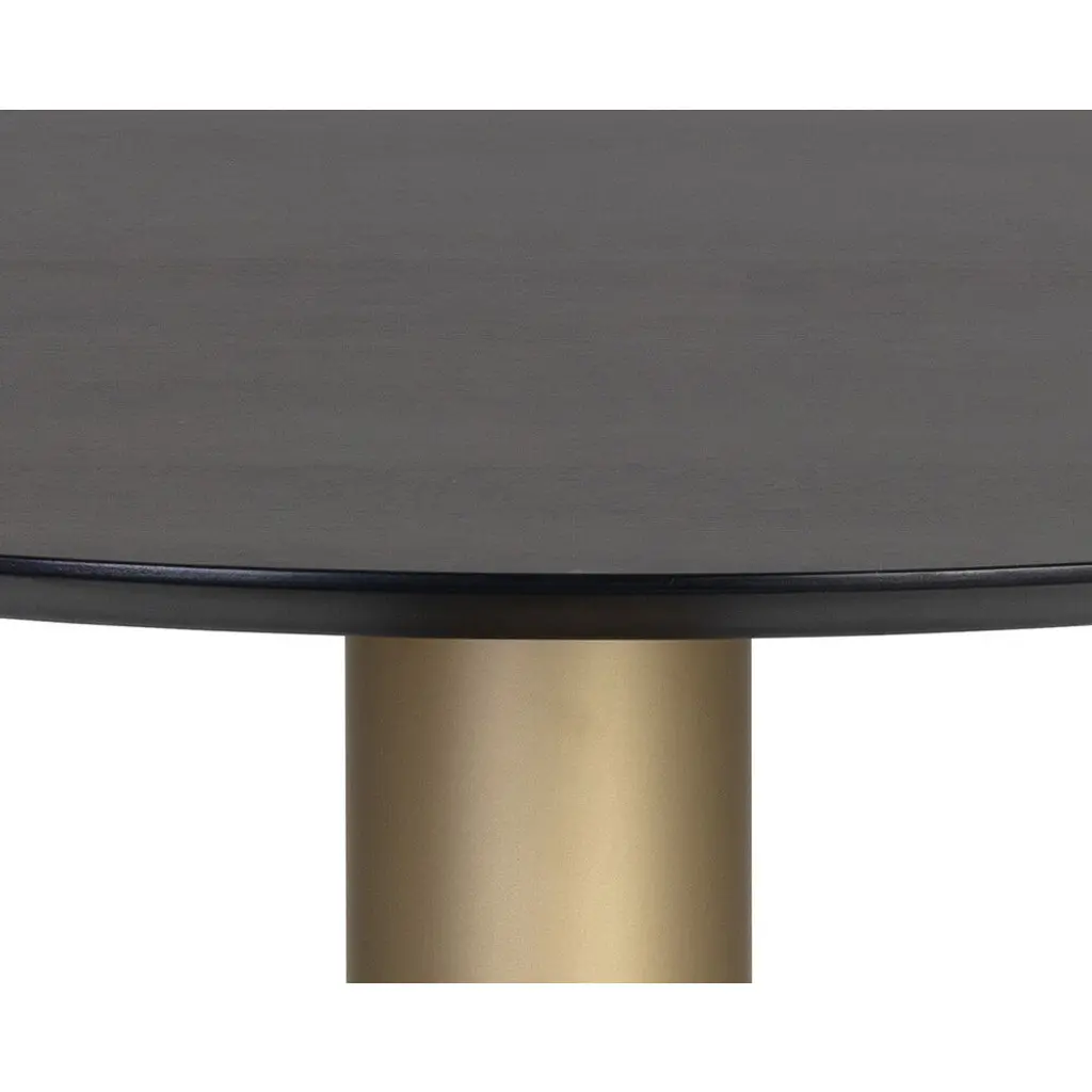 This dining table collection offers a modern look with an organic feel. Features a substantial light grey marble and brushed gold iron base with a charcoal grey finished oak wood veneer top. As marble is a natural material, unique veining, pitting, fissures, micro-cracks and colour variations are all characteristics that add to the uniqueness and beauty of each piece. As wood is an organic, porous material, these pieces will contain natural variation of texture and may also exhibit fine indentations and cracks. Wood pieces will also display a disparity of colour and grain, and visible knots and burls that add to the character of each piece.