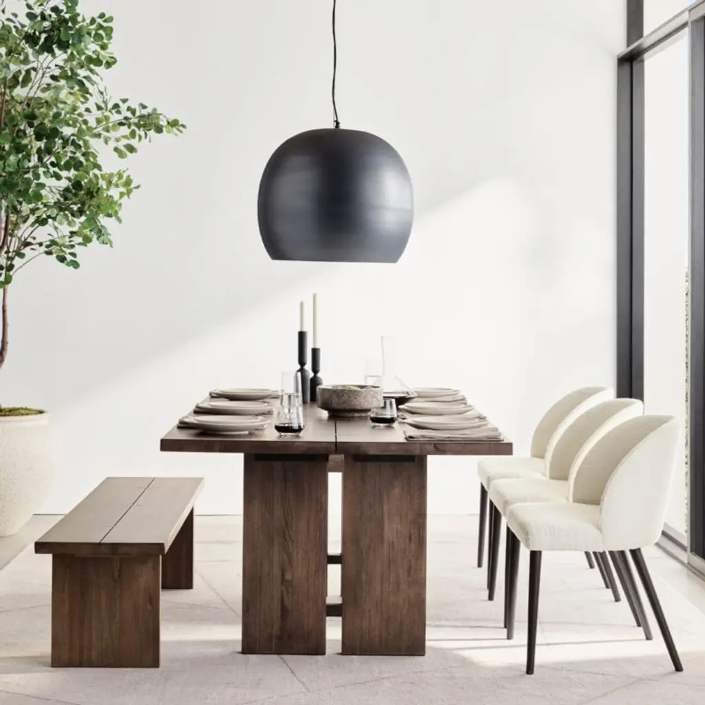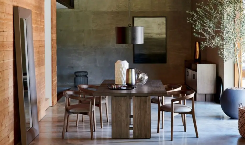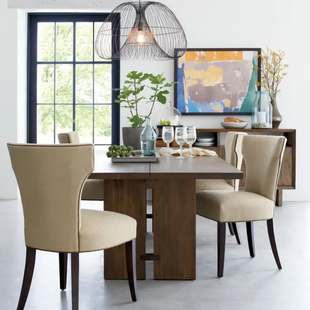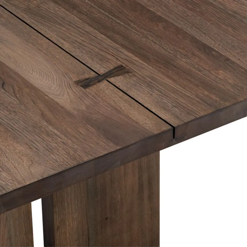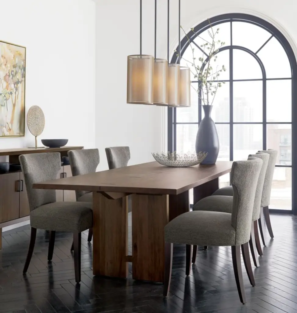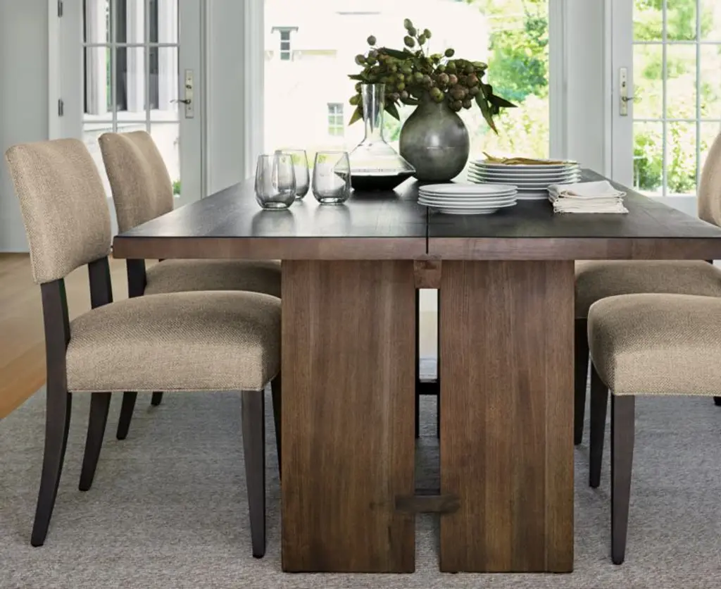 Our Monarch dining collection is handcrafted using centuries-old techniques in a modern way. Rare lengths of solid walnut chosen for their beautiful cathedral graining, are united on top with traditional wood-on-wood butterfly joinery without using nails or screws.