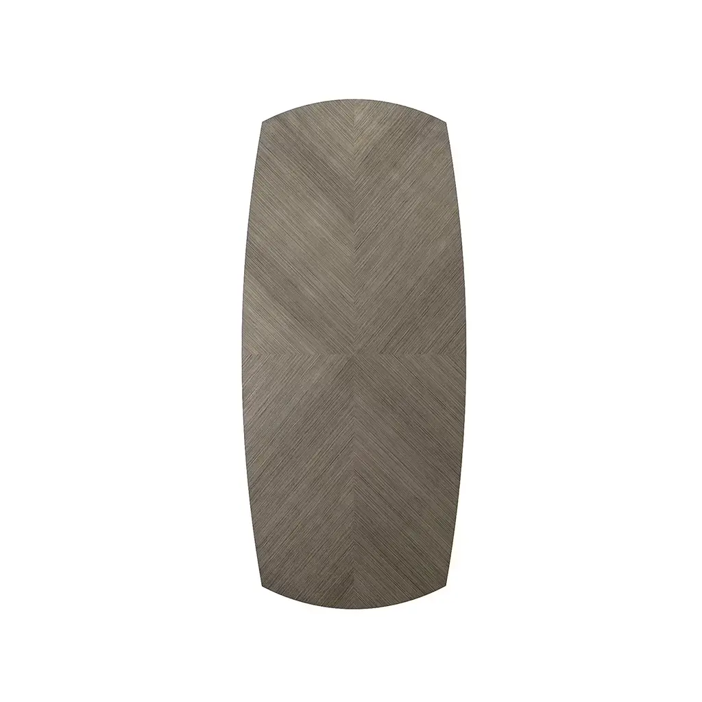 The complexity of the base realized in matte Ardesia wood and curved parts of the two monoliths makes this table truly a piece of art. On the top, the opposite verse combination of the veneer on the matte walnut Canaletto top gives a touch of style to the piece. The barrel shape of the top makes the table more elegant thanks also to the golden metal base underneath the top and on the floor. The table is also available with a 220cm top. Please ask Concierge for customization options.