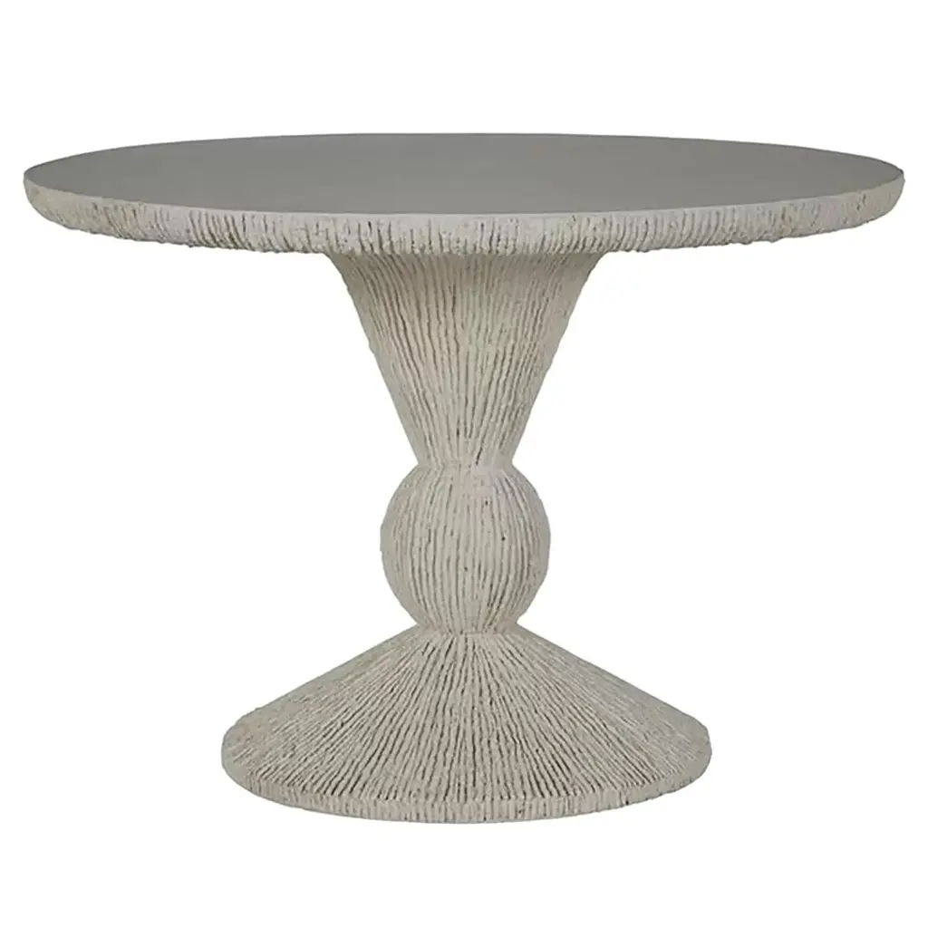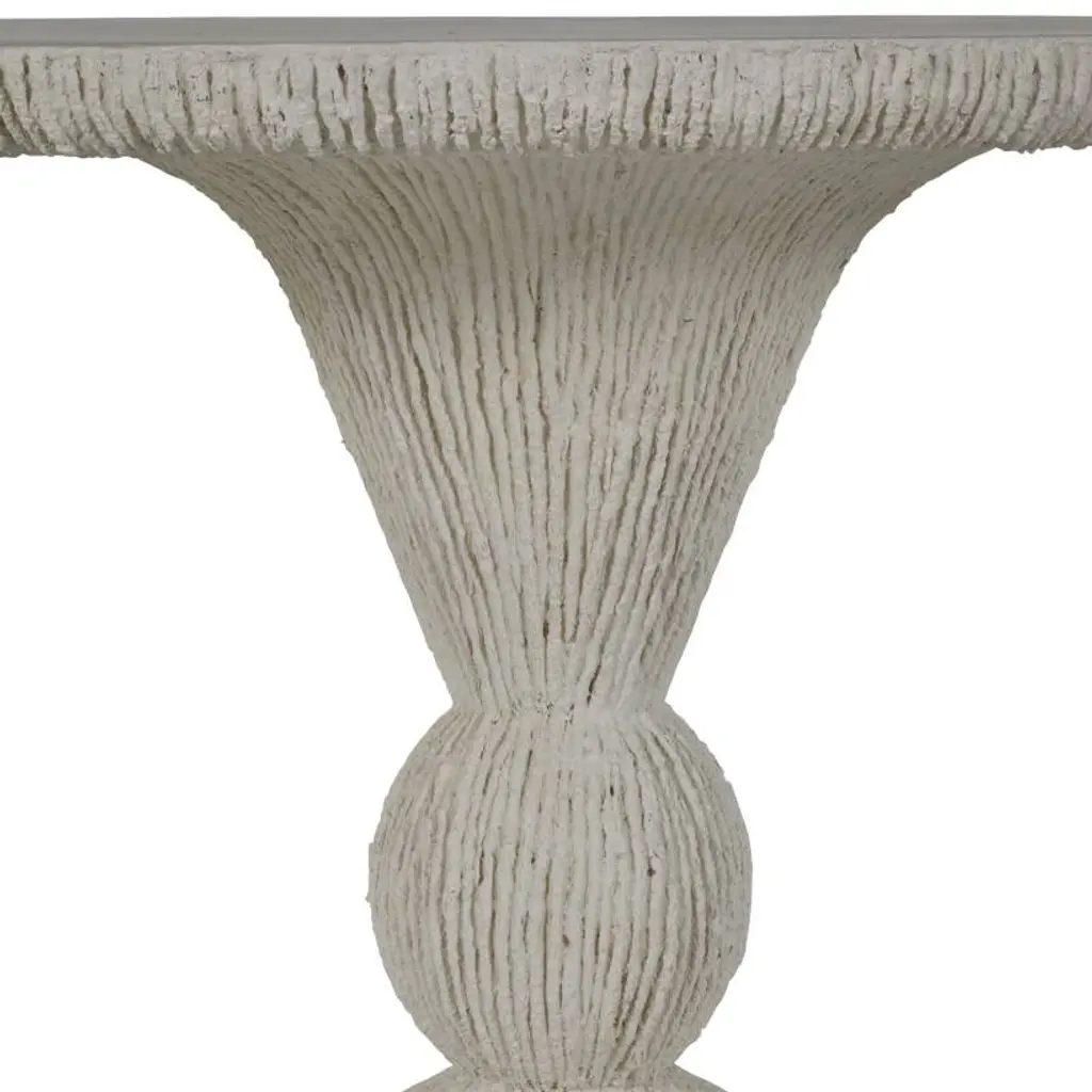 The Montello Dining Table presents a stunning interplay of texture and form, artfully designed to anchor a dining space with its distinctive character. Its pedestal base, with a captivating hourglass silhouette, exhibits a tactile vertical ribbing that invites touch and adds visual depth. The table's round top and structured base are finished in a muted palette, striking a balance between understated elegance and bold architectural design. Perfect for intimate gatherings or as a statement piece in a dining room, the Montello Dining Table transcends the ordinary, merging sculptural beauty with everyday functionality.