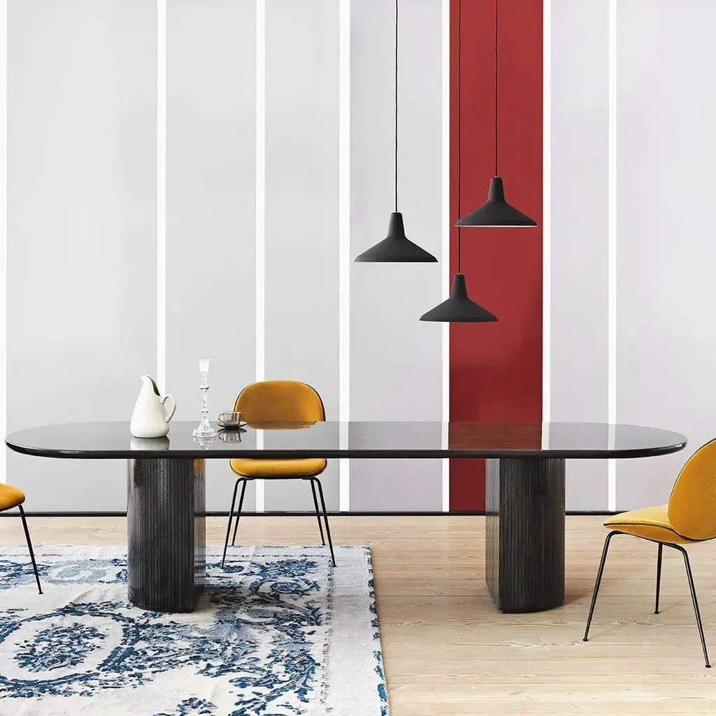 Space Copenhagen is the designer behind the classic Moon Table; a series of organic rounded tables for both domestic and public spaces. The interplay between the beautiful solid oak table top and the smooth half – or full moon shaped base, with bevelled surface, serving as structure and ornament, creates a simple yet strong identity for the design. The result is an elegant table with clear references to traditional Danish carpentry, where the tribute of marriage between design and craftsmanship is in focus. Available in two sizes.
