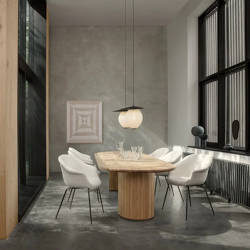 Space Copenhagen is the designer behind the classic Moon Table; a series of organic rounded tables for both domestic and public spaces. The interplay between the beautiful solid oak table top and the smooth half – or full moon shaped base, with bevelled surface, serving as structure and ornament, creates a simple yet strong identity for the design. The result is an elegant table with clear references to traditional Danish carpentry, where the tribute of marriage between design and craftsmanship is in focus. Available in two sizes.