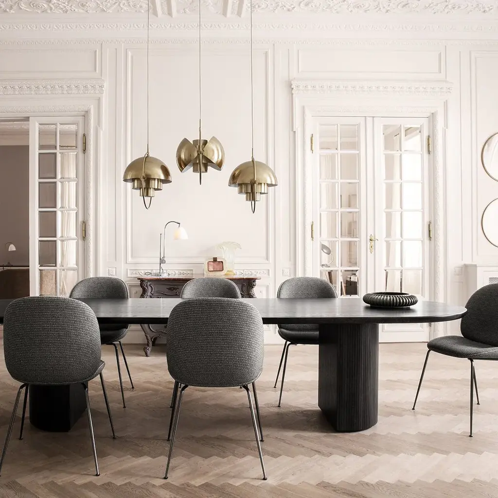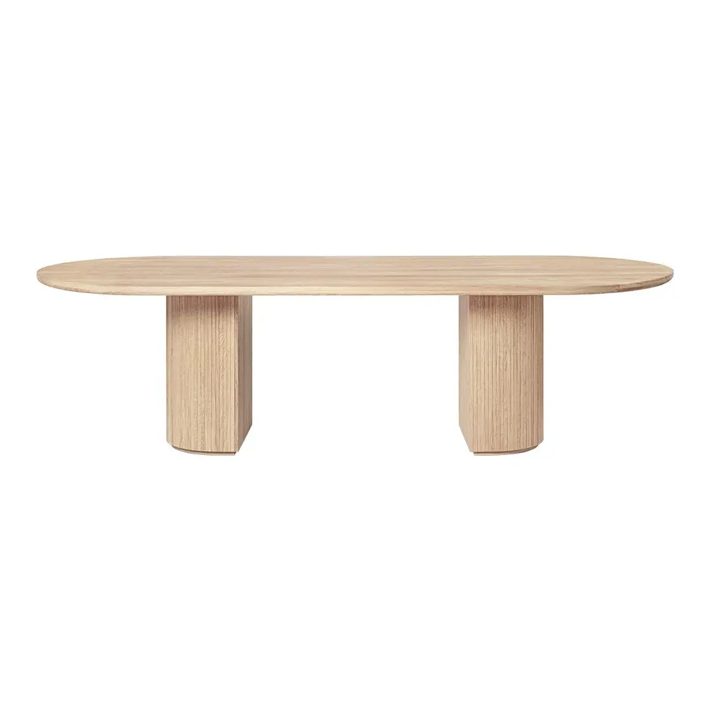 Space Copenhagen is the designer behind the classic Moon Table; a series of organic rounded tables for both domestic and public spaces. The interplay between the beautiful solid oak table top and the smooth half – or full moon shaped base, with bevelled surface, serving as structure and ornament, creates a simple yet strong identity for the design. The result is an elegant table with clear references to traditional Danish carpentry, where the tribute of marriage between design and craftsmanship is in focus. Available in two sizes.