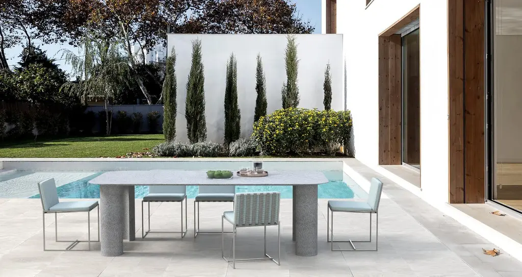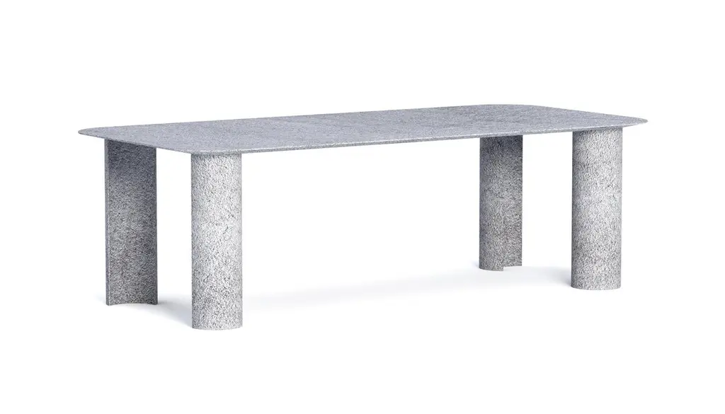 Moon Phase Dining Table by spHausDesigned by Filippo Dell'OrtoDimensions: D 114 x W 240 x H 74 cm.Materials: Hard polyurethane, concrete powder.Moon Phase, is a sophisticated massive monolithic sculptural dining table, with constant elegance in the proportions and materials. The table is made in hard polyurethane, coated in a variety of fine handcrafted reconstructed surfaces made of a mixture of marble, argil, or concrete powders completely handcrafted. Designed in two shapes, rectangular and round, it is available for outdoor and indoor use.spHaus is an Italian company producing high-end contemporary indoor and outdoor design furniture.