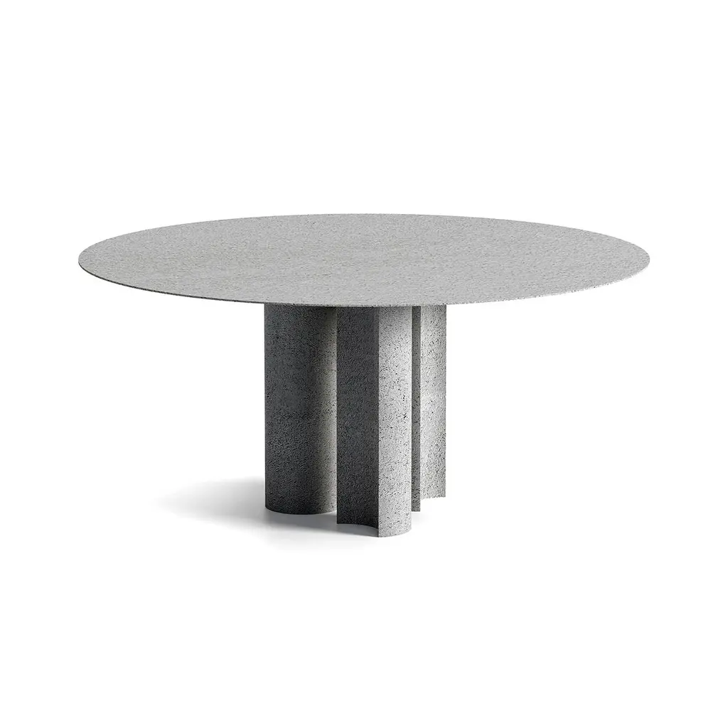 Moon Phase Round Dining Table by spHausDesigned by Filippo Dell'OrtoDimensions: D 160 x H 74 cm.Materials: Hard polyurethane, concrete powder.Moon Phase, is a sophisticated massive monolithic sculptural dining table, with constant elegance in the proportions and materials. The table is made in hard polyurethane, coated in a variety of fine handcrafted reconstructed surfaces made of a mixture of marble, argil, or concrete powders completely handcrafted. Designed in two shapes, rectangular and round, it is available for outdoor and indoor use.spHaus is an Italian company producing high-end contemporary indoor and outdoor design furniture.