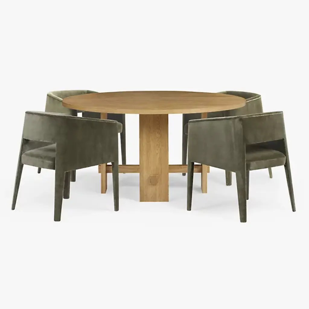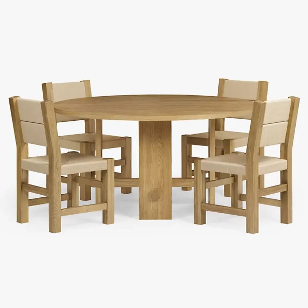 The Muckleroy Dining Table from Alder & Ore is a culinary arena where memories are forged. Its circular top, a perfect democracy of oak, invites animated discussions and shared laughter. Inspired by Southwestern traditions, the architectural base grounds the table with a sense of history and place. This is a gathering point that turns simple dinners into cherished rituals. Designed to seat six, this dining table creates a nexus of warmth, flavor, and human connection.