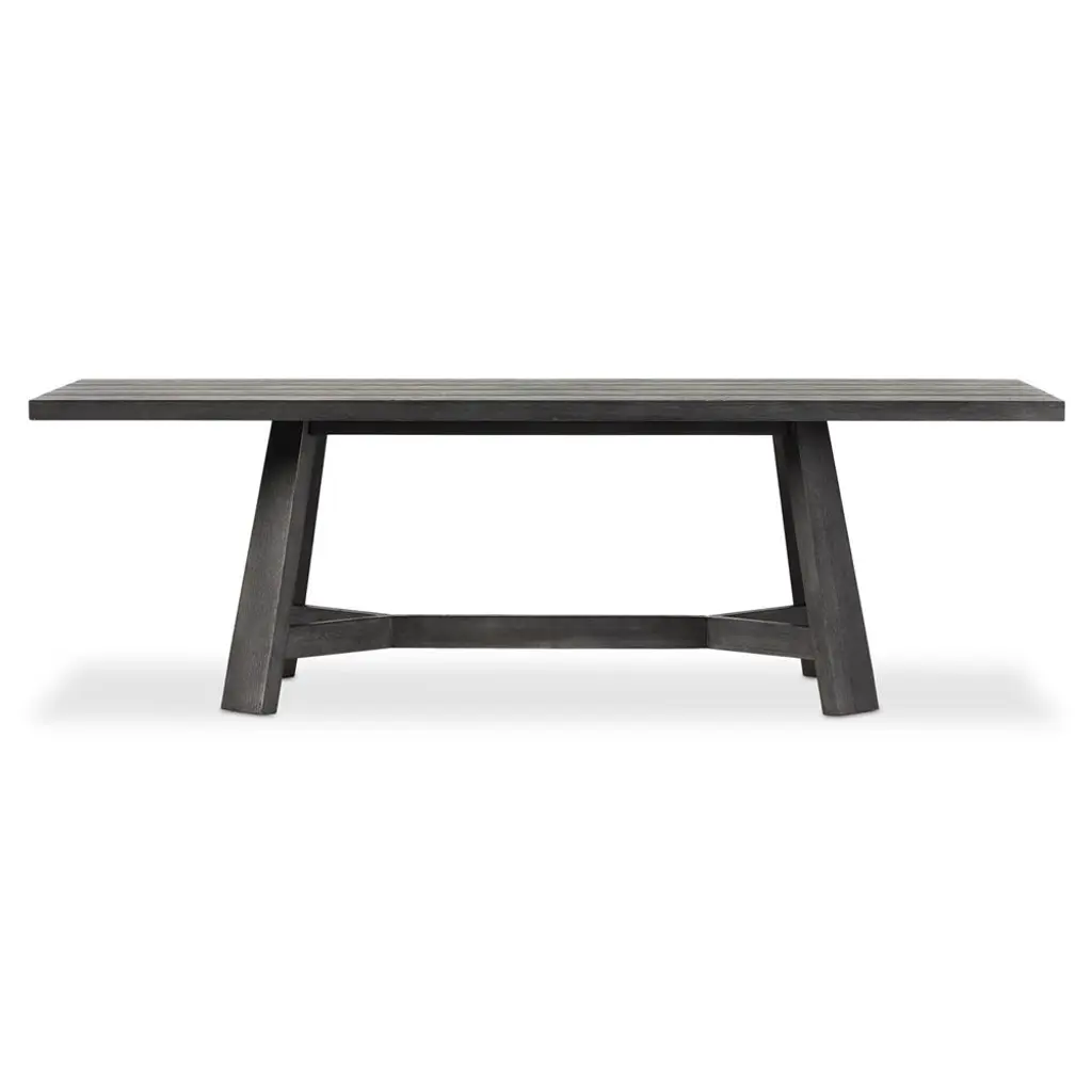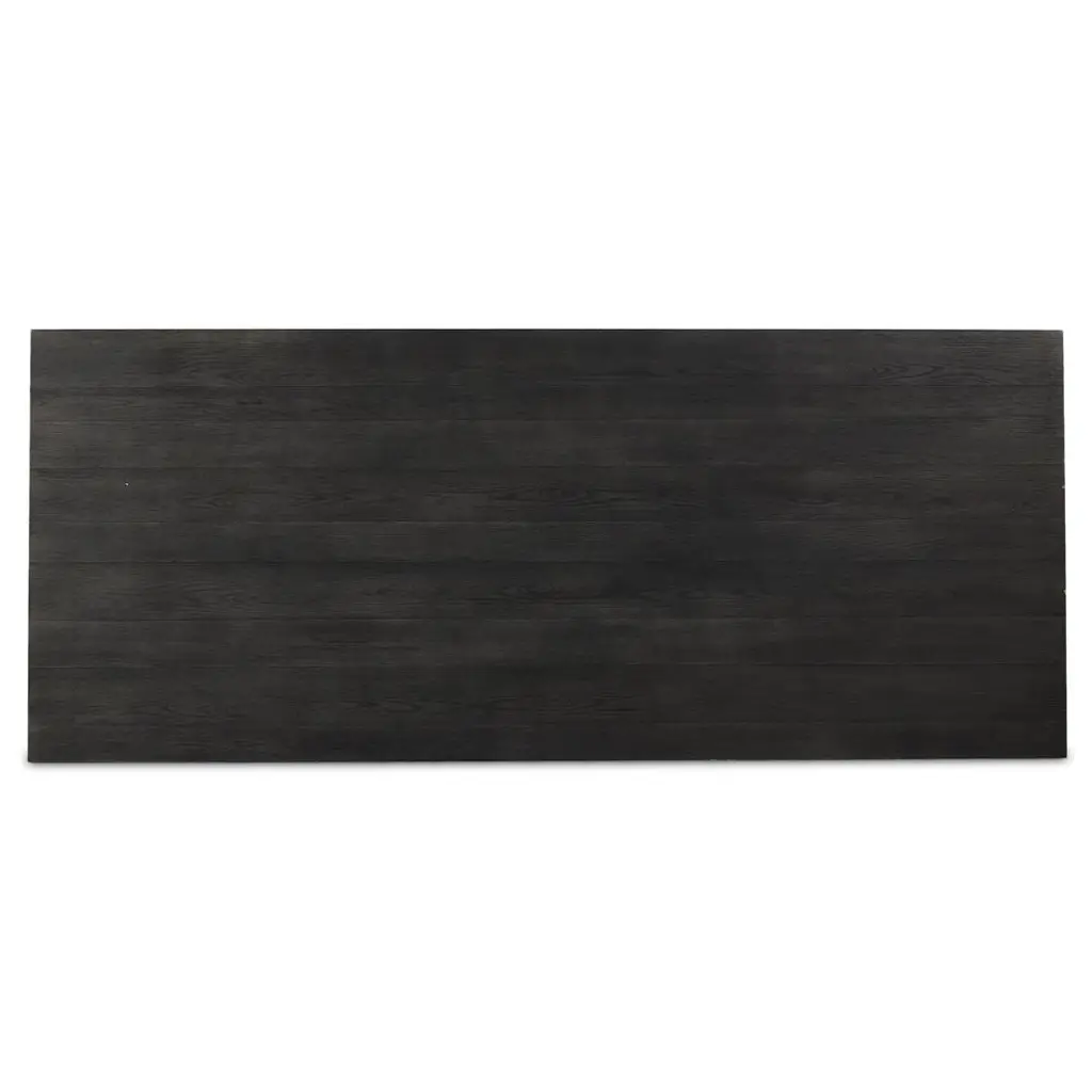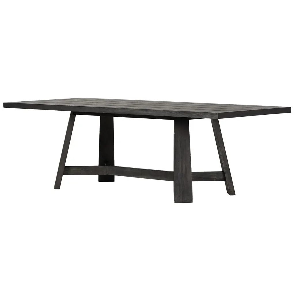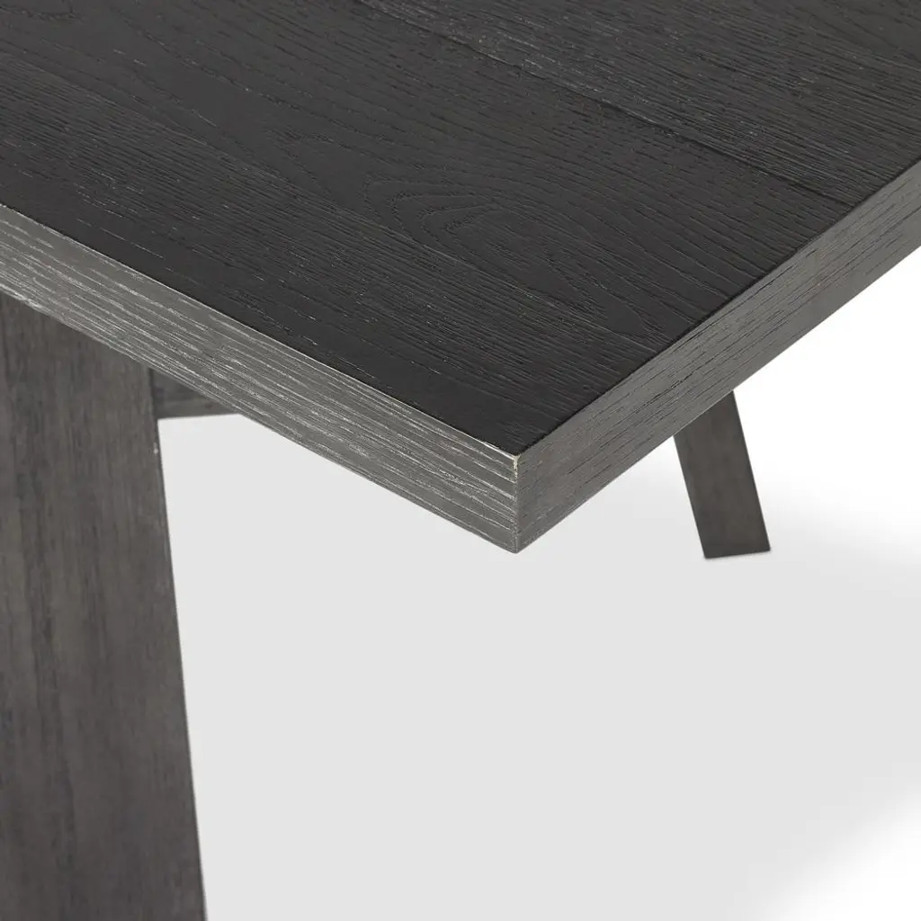 A design collaboration by Amber Lewis and Four Hands. Tapered angular legs connected by stretchers support a spacious, welcoming dining table of solid parawood and black-finished oak.