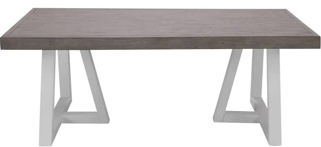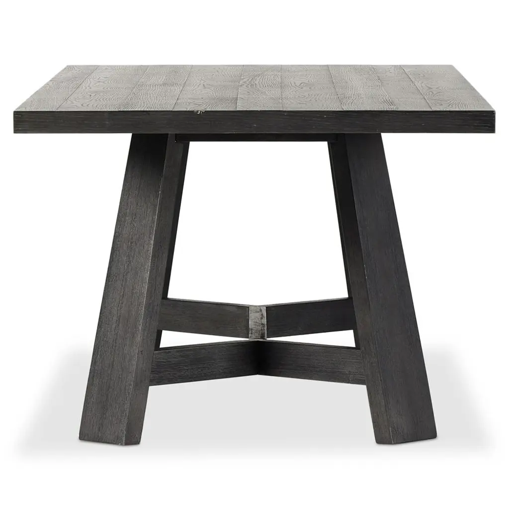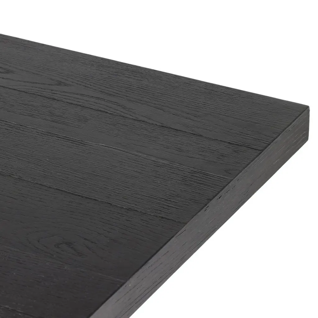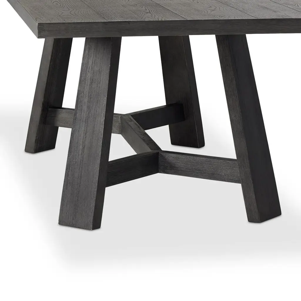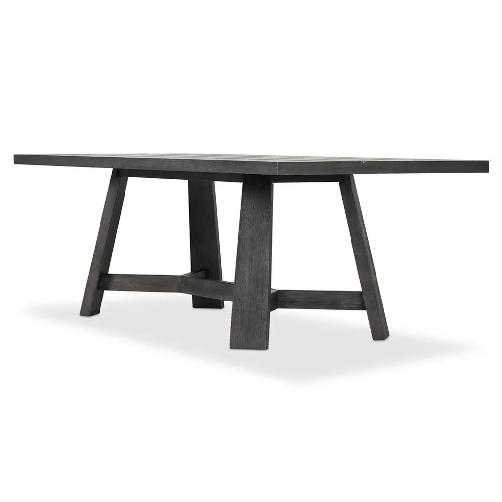 A design collaboration by Amber Lewis and Four Hands. Tapered angular legs connected by stretchers support a spacious, welcoming dining table of solid parawood and black-finished oak.