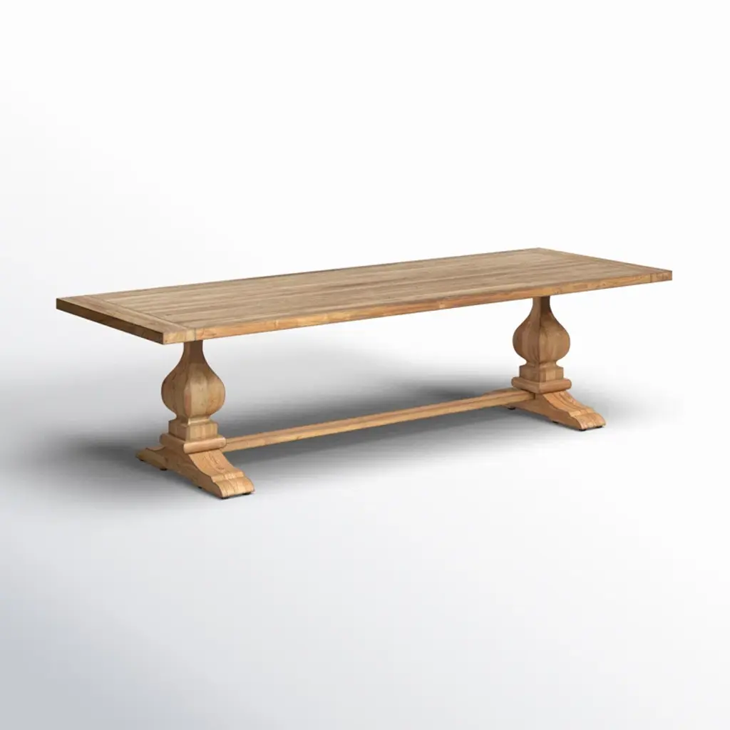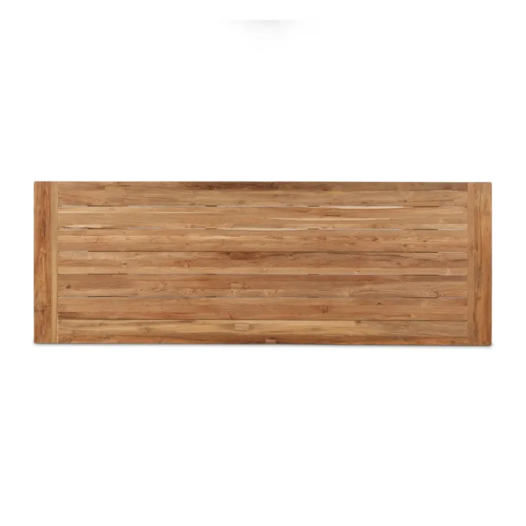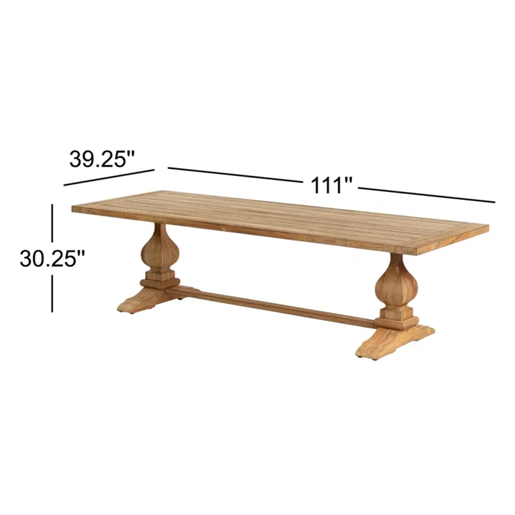 Inspired by vintage French design, reclaimed FSC(r)-certified teak adds character to this sustainably made outdoor dining table. Knots, holes and patches will be present on each piece, adding unique dimension. Cover or store inside during inclement weather and when not in use.