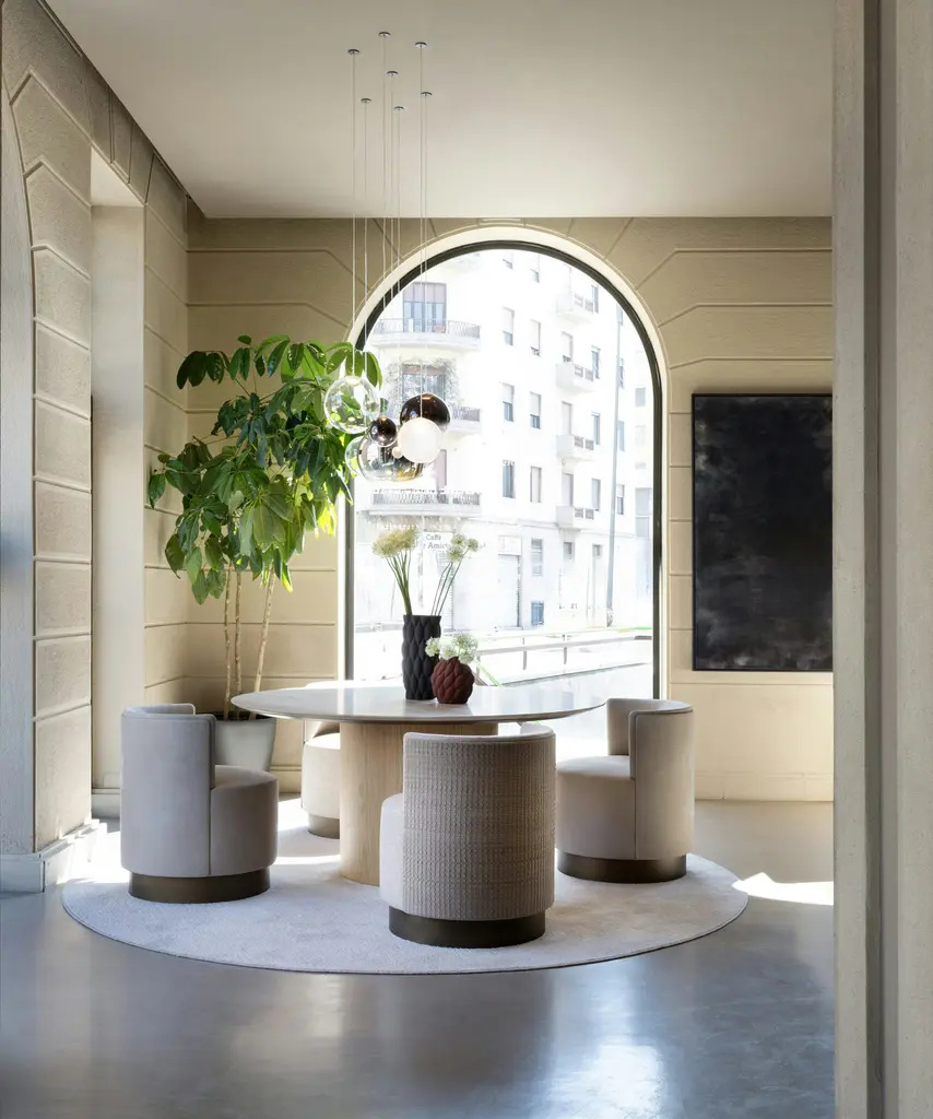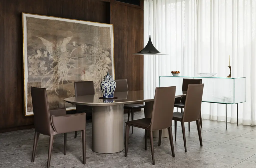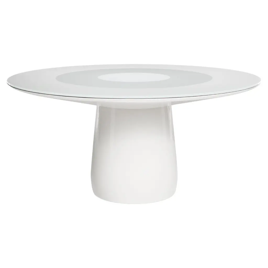 The Myon Dining Table's (2023) sculptural geometry lends a graceful beauty to meal times. Italian architect and design duo Oscar and Gabriele Buratti designed its generously proportioned top and statuesque cylindrical base as a comfortable and convivial space for sharing. Choose from round or oval shapes that seat six to 10 people. Myon's sleek, lacquered gloss finish will add a modern, lively touch to any dining space. Made in Italy.