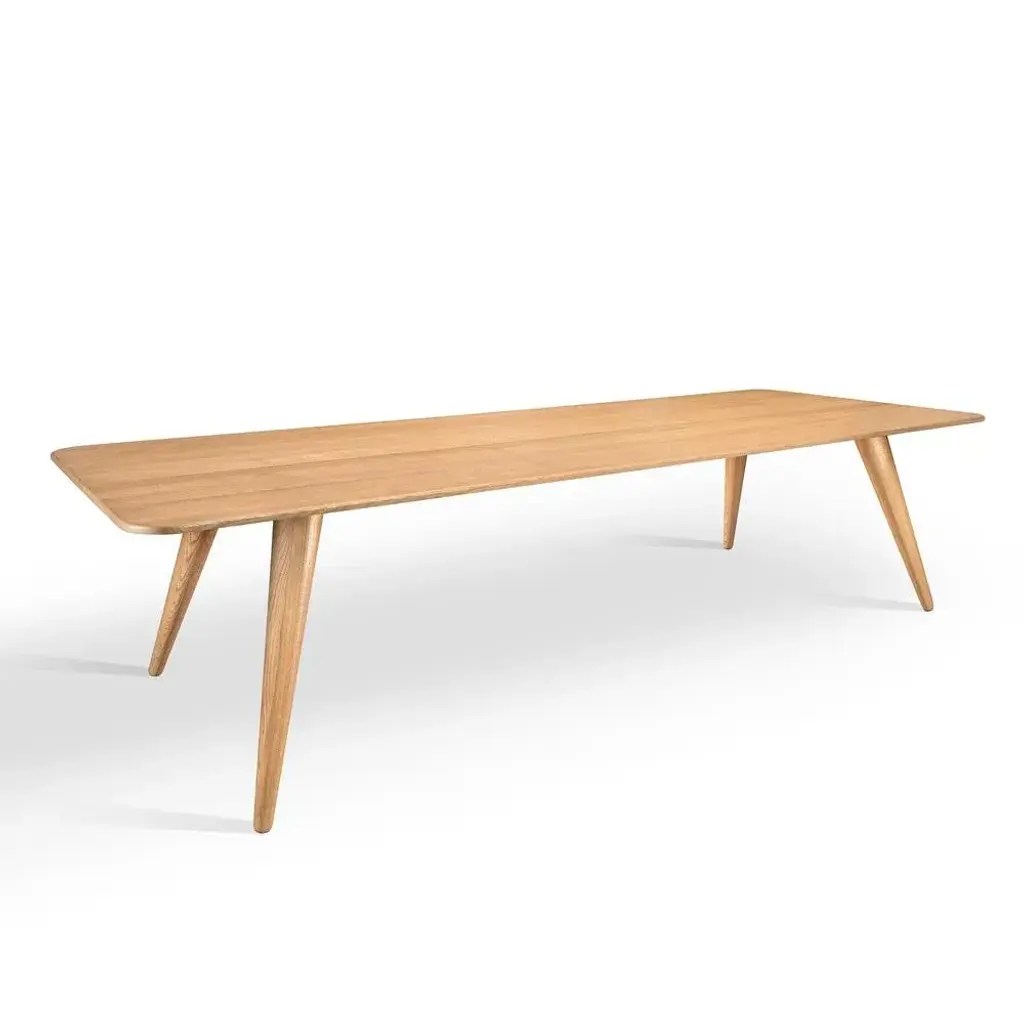 N.18 dining table by timbart dimensions: d 95 x w 272 x h 76 cm material: solid oak wood, oxidative oil. Timbart is a woodworking atelier from hungary - specialising in hardwood flooring, cutom-made furniture, and any kind of solid wood surface in both residential and commercial projects. The dedication of the founders to wood goes back to generations and it became more than just technical knowledge over time. Timbart reinterpreted the century-old heritage of wood in the modern environment and provides an infinite range of wooden finishes by using reactive stains or natural pigments to colour the different materials.