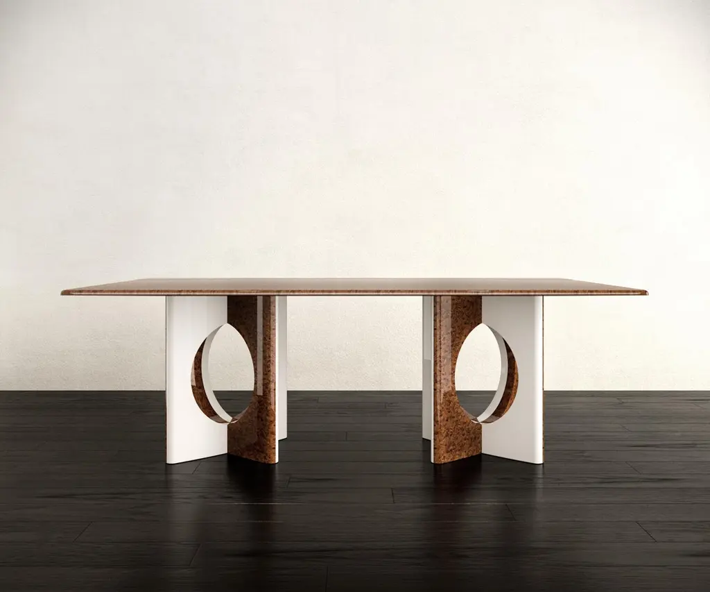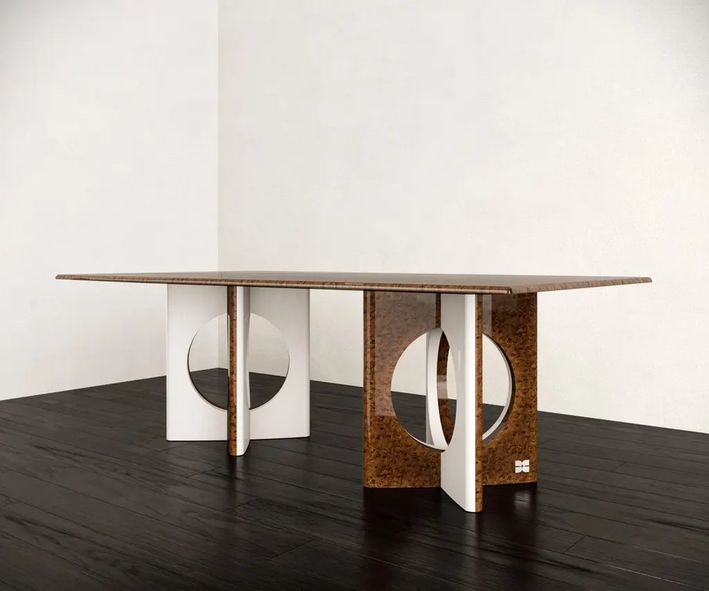 LIMITED EDITION 30SIGNED, SERIAL NUMBER AND CERTIFICATE OF AUTHENTICITYGUILTY PLEASURE COLLECTIONYEAR 2024“Unleash the Timeless Elegance: Experience the Iconic Pantheon Table – Where History Meets Dining”The Pantheon Table is a striking dining table that draws inspiration from the timeless beauty of the marble floor tiles found in the Pantheon, one of Rome’s most iconic landmarks. This exquisite piece of furniture incorporates the circular and square forms of the Pantheon’s floor tiles, paying homage to the historical significance of the structure. The table’s design cleverly juxtaposes these contrasting shapes, creating a visually captivating aesthetic that seamlessly blends the circular and square elements together. The circular forms represent the elegance and grace of the Pantheon’s architecture, while the square forms symbolize stability and strength. Available in three distinct variations, the Pantheon Table offers a range of options to suit different tastes and interior styles. Each variation boasts a thoughtful selection of color options that complement the table’s design and further enhance its visual appeal. Whether you prefer a bold and dramatic statement or a more subtle and understated look, the Pantheon Table has options to suit your personal style. Crafted with meticulous attention to detail and using high-quality materials, the Pantheon Table not only serves as a functional dining surface but also stands as a work of art in its own right. It invites conversation and admiration, effortlessly becoming the centerpiece of any dining space. Embodying the rich history and architectural grandeur of the Pantheon, the Pantheon Table is a testament to the enduring influence of ancient design and a remarkable addition to any home or establishment seeking a touch of elegance and sophistication.
