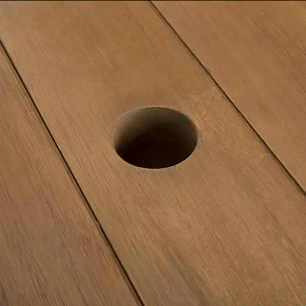 The Nadell Outdoor Dining Table from Alder & Ore brings the relaxed charm of a Balinese resort to your outdoor living space. Featuring a round tabletop and bold geometric base, this table highlights the natural beauty of eucalyptus wood, enhanced by durable galvanized steel hardware. Foldable for easy storage until it's needed, it's perfect for everything from intimate candlelit dinners to larger family gatherings. Its rustic modern style adds impeccable character to any outdoor setting.
