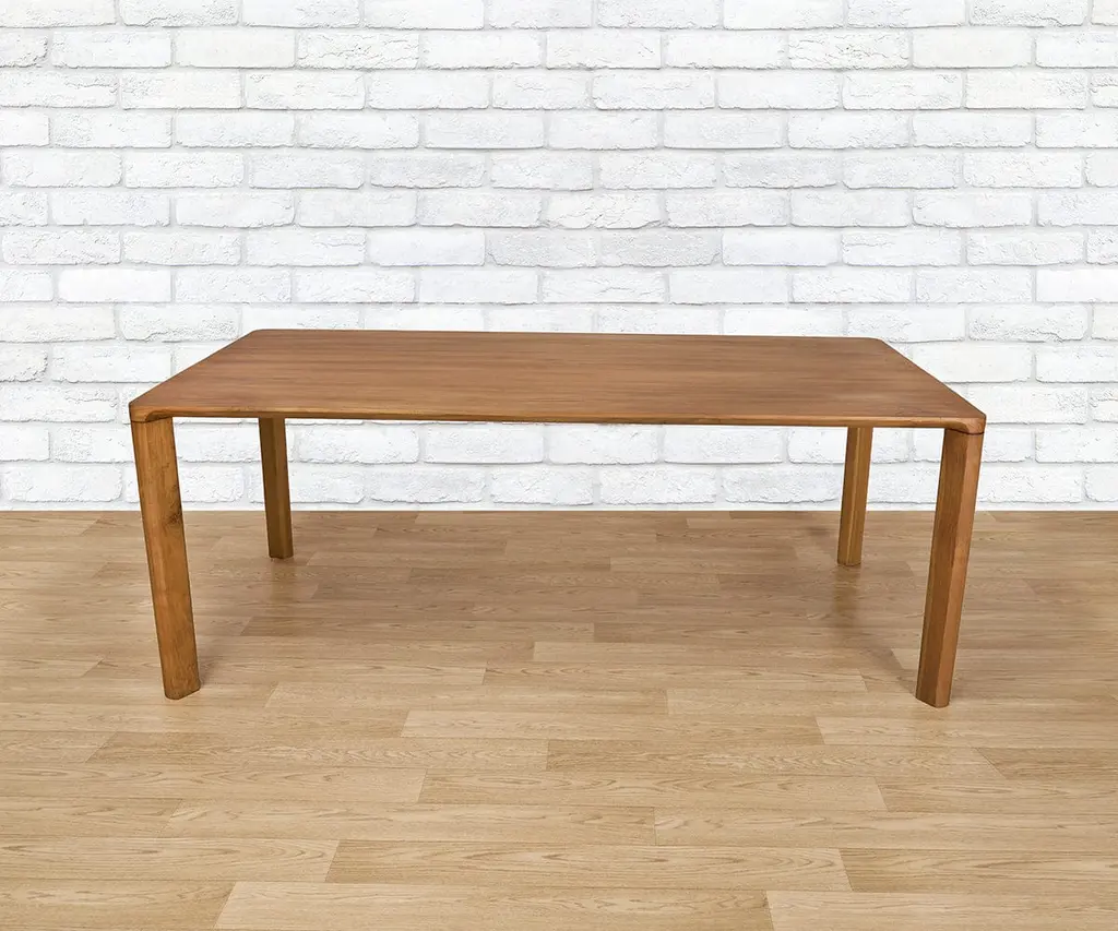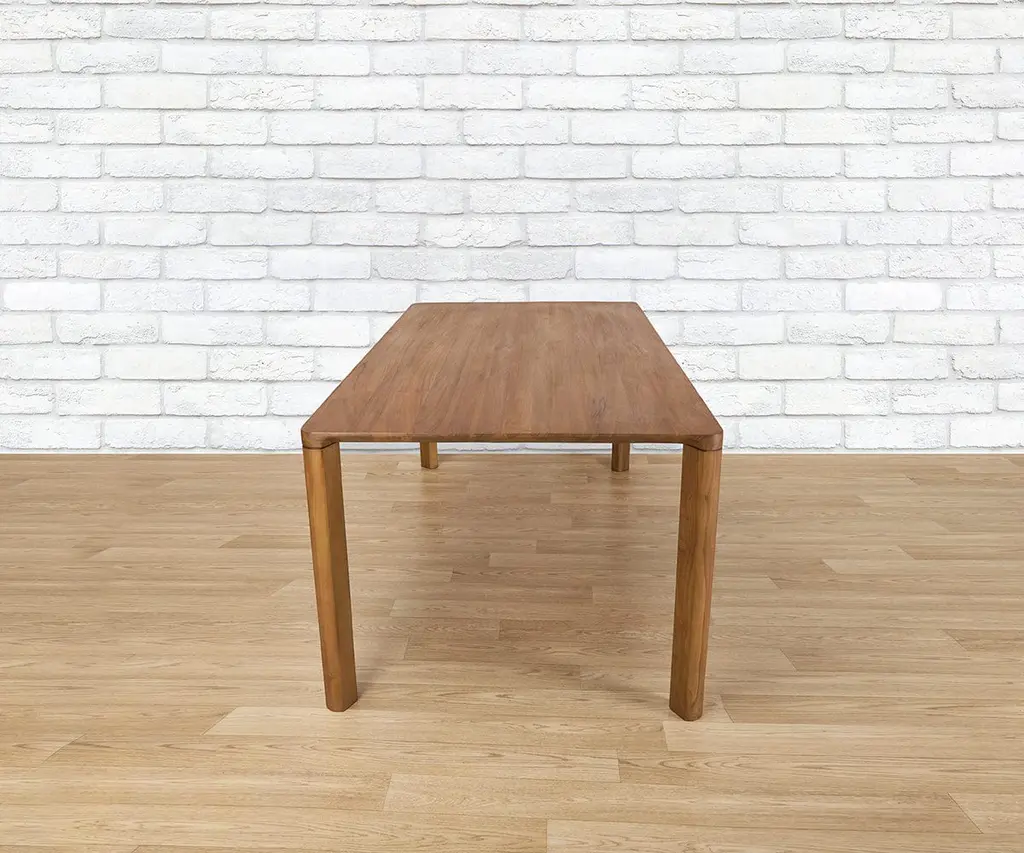 The Nakia Rectangular Dining Table offers a space where you can host anything from cozy dinners for two to dinner parties with family and friends. Spacious and built to last, this table comes ready to serve up timeless modern style. Small inset horizontal lines on each corner provide points of visual interest, and the overall sturdy construction creates a piece you'll be sure to enjoy for years to come. The Nakia Collection offers an array of pieces with clean lines and minimalistic design. Crafted from solid teak in a natural finish, the Nakia Collection stands ready to easily blend with any number of decor styles. Stylish, modern, and classic by design, this collection can both meet your needs and stand the test of time.