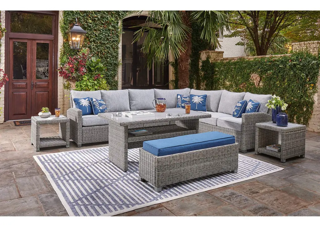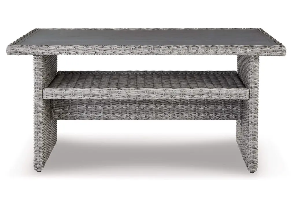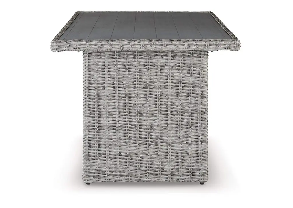 Indulge in backyard bliss. The Naples Beach outdoor multi-use table has a straightforward sense of style with its light gray resin wicker. The table's rust-proof aluminum is enhanced with a wood-look finish, weathering the elements and keeping your aesthetic casually cool. Weight 60.000 lbs. (27kgs.)