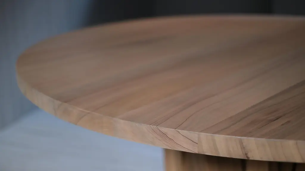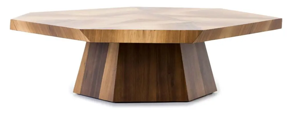 Natural African Walnut Round Table With Rectangular Beam Base By Arno Declercq