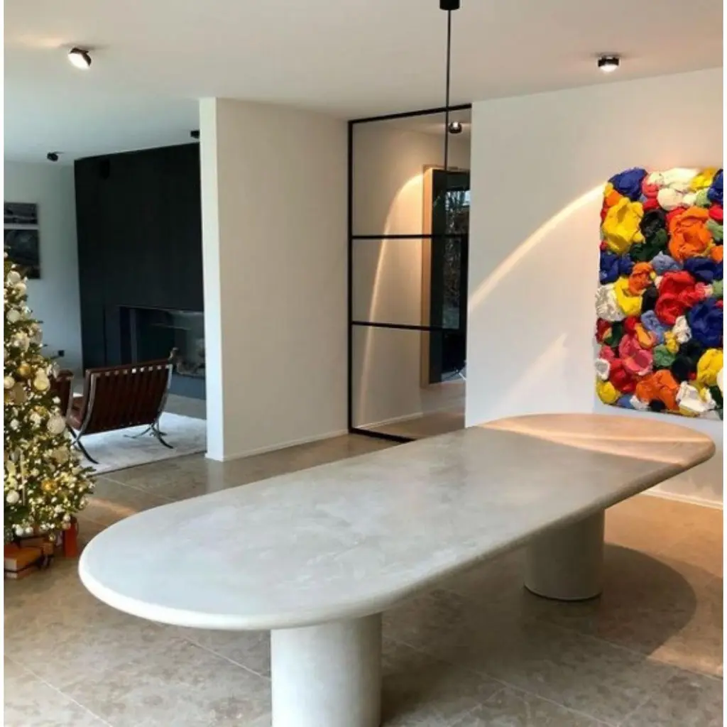 Natural Plaster Hand-Sculpted Outdoor Dining Table 360 By Philippe Colette