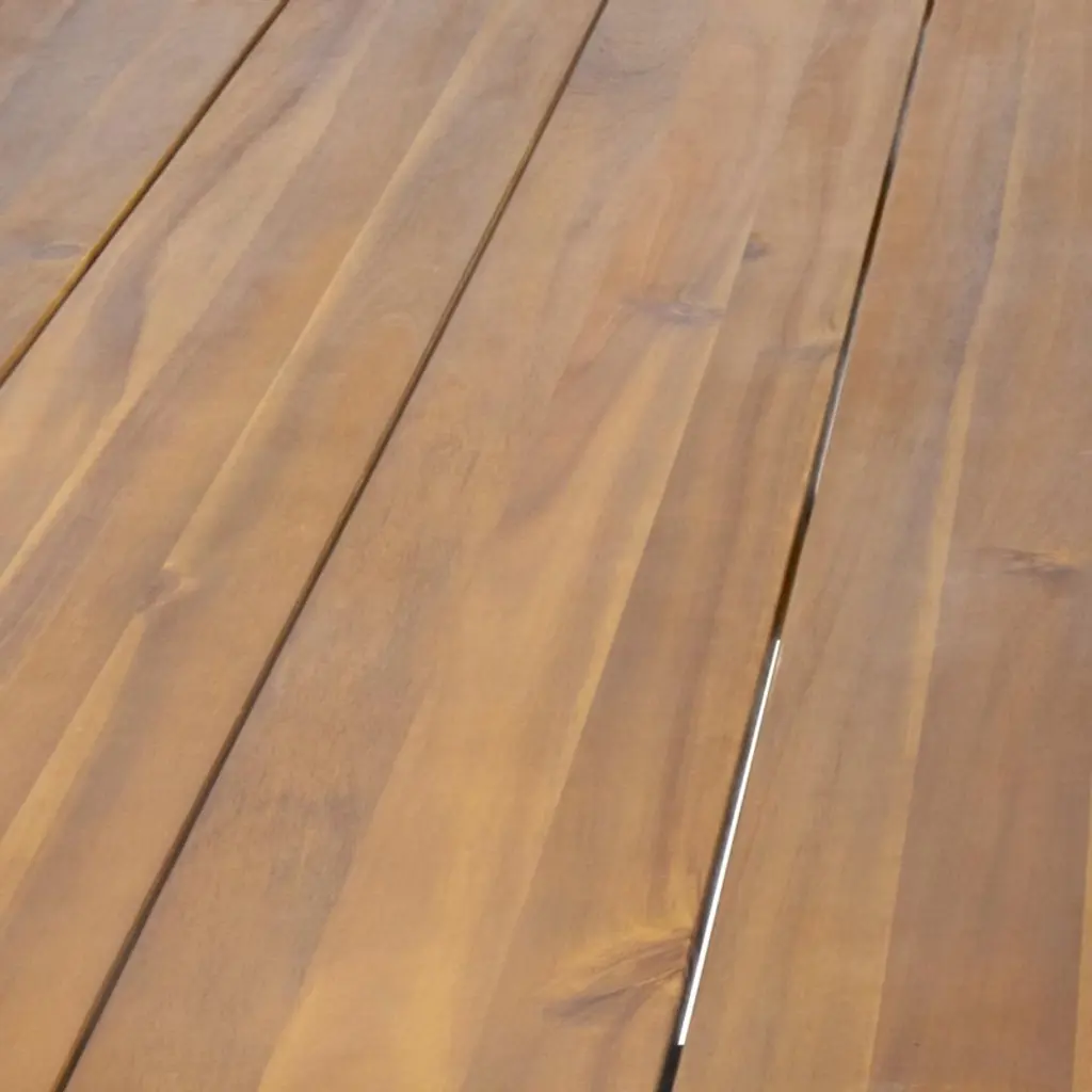 NAYSAYE Patio End Tables offers an industrial wood and metal rectangular dining table designed for large gatherings indoors or outdoors. The teak-stained acacia wood top pairs perfectly with the iron hairpin legs, blending rustic charm with mid-century industrial style. Built to endure outdoor conditions, this durable table is weather-resistant and easy to clean. Simple assembly ensures you can enjoy your new space in no time while the versatile design makes it ideal for any event.