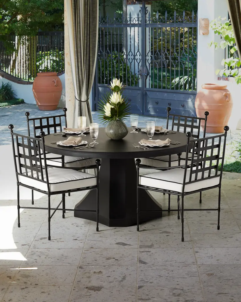 Neiman Marcus Round Outdoor Pedestal Dining Table, Matte Black | Horchow