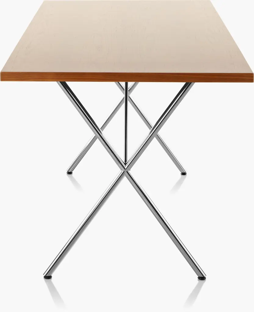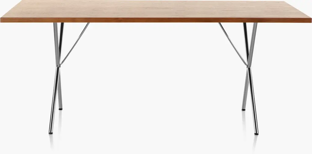 George Nelson did his work at home and in his office (and probably every place in between), and his lack of distinction between those spaces shows in the multifunctional furniture he designed - especially the universal X-Leg Table (1950). Accommodating by design, this table pairs well with everything from dining chairs to task chairs. This is the authentic Nelson X-Leg Table produced by Herman Miller, Inc. Nelson is a trademark of Herman Miller.