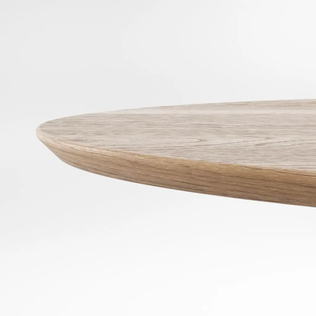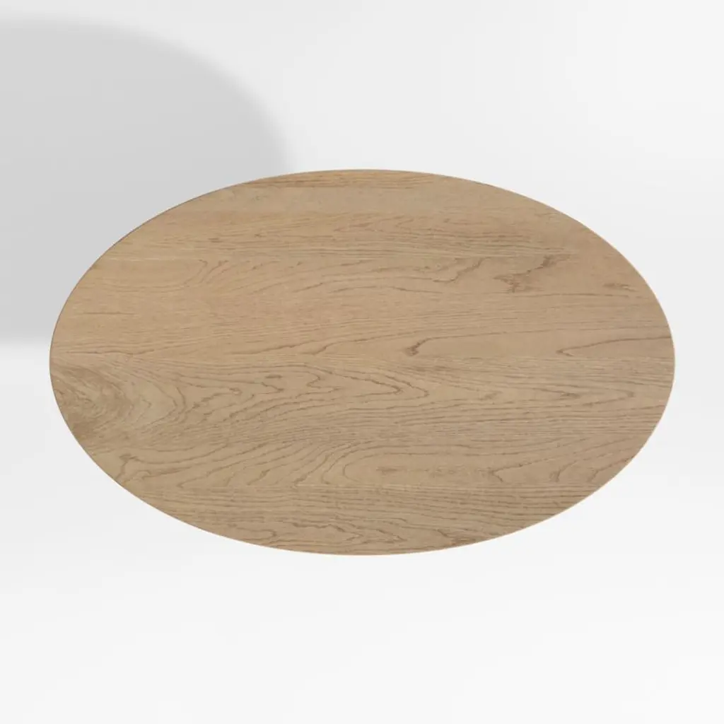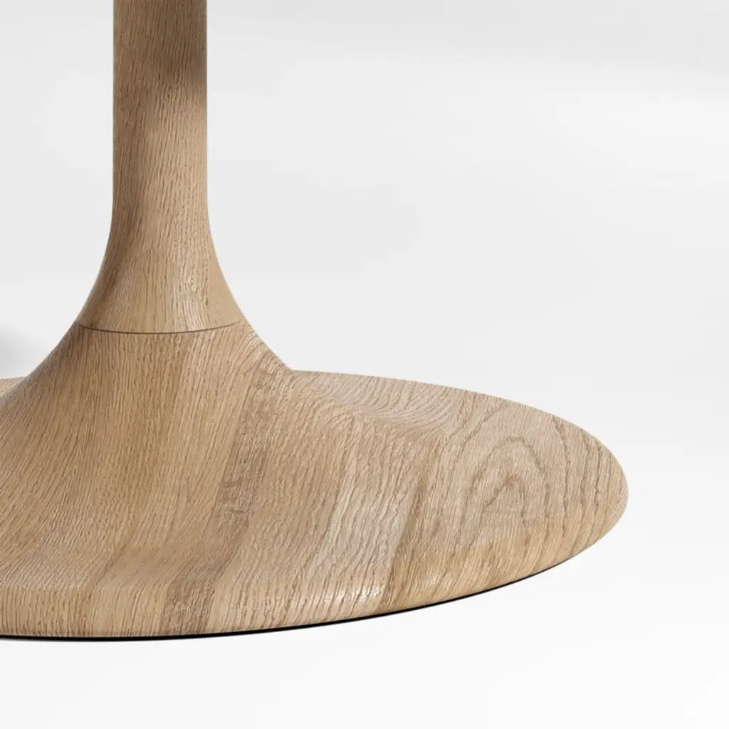 Channeling the look of an iconic example of modern design, our Nero dining table takes this modern classic in a more natural direction in solid white oak. A turned trumpet base sweeps the slender pedestal, supporting a pristine oval top rich with beautiful graining. A great choice for banquette dining, the Nero wood pedestal table comfortably seats four.