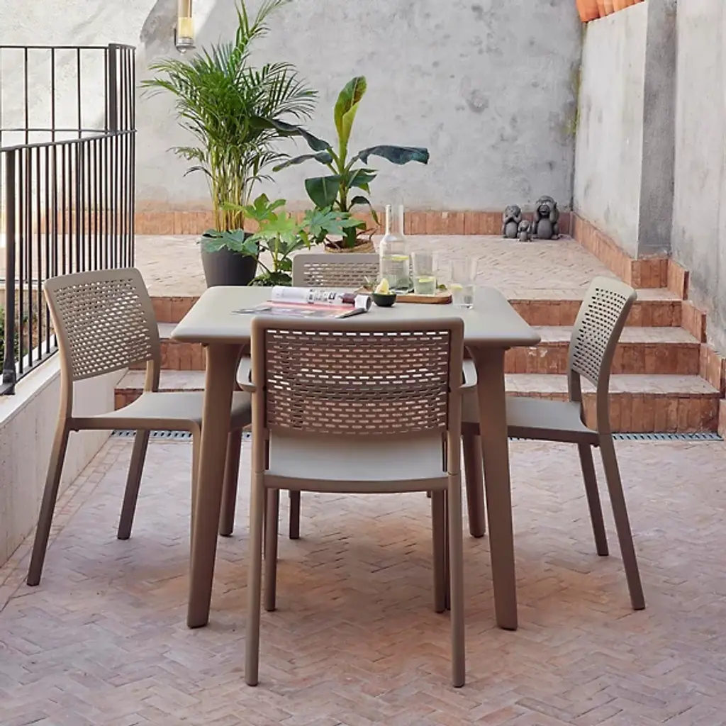 Make a charming addition to your dining room furniture with the New Dessa Square Table by Resol. Designed with a sleek, modern style, this table's compact design also makes it a fantastic solution for spaces of all sizes. Made of robust polypropylene, this versatile table is not just suitable for indoor use but can also seamlessly blend into your garden, terrace, or balcony. Its functional, stylish and minimalist design not only complements different home furnishings but also caters to your contemporary tastebuds. Let the New Dessa Table by Resol jazz up your meals and gatherings, indoors and out.