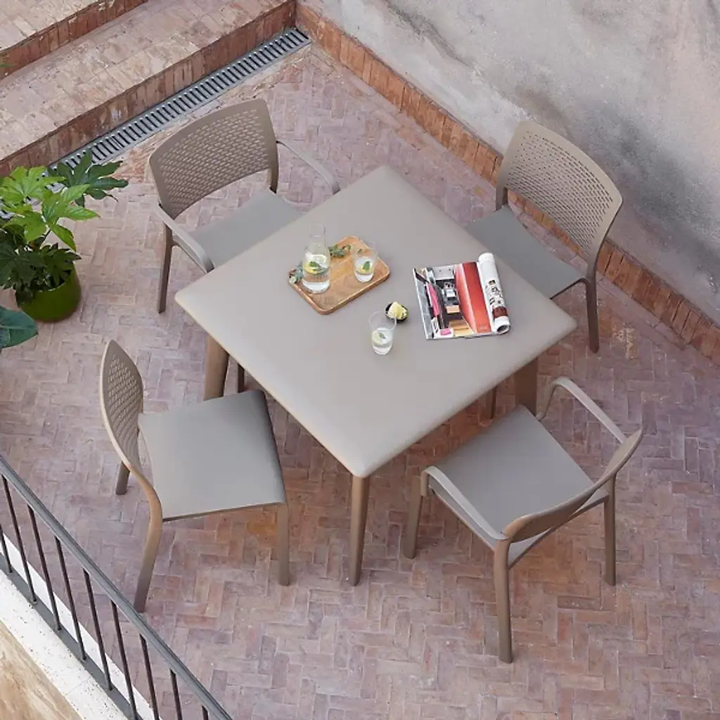 Make a charming addition to your dining room furniture with the New Dessa Square Table by Resol. Designed with a sleek, modern style, this table's compact design also makes it a fantastic solution for spaces of all sizes. Made of robust polypropylene, this versatile table is not just suitable for indoor use but can also seamlessly blend into your garden, terrace, or balcony. Its functional, stylish and minimalist design not only complements different home furnishings but also caters to your contemporary tastebuds. Let the New Dessa Table by Resol jazz up your meals and gatherings, indoors and out.