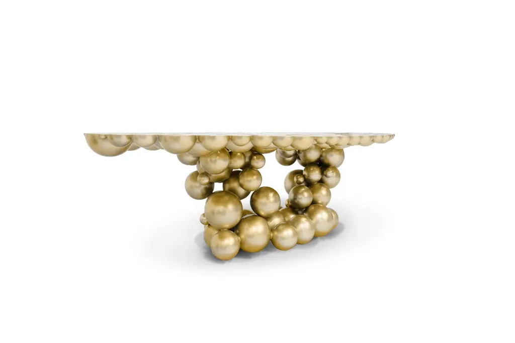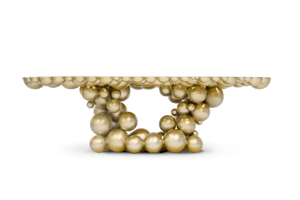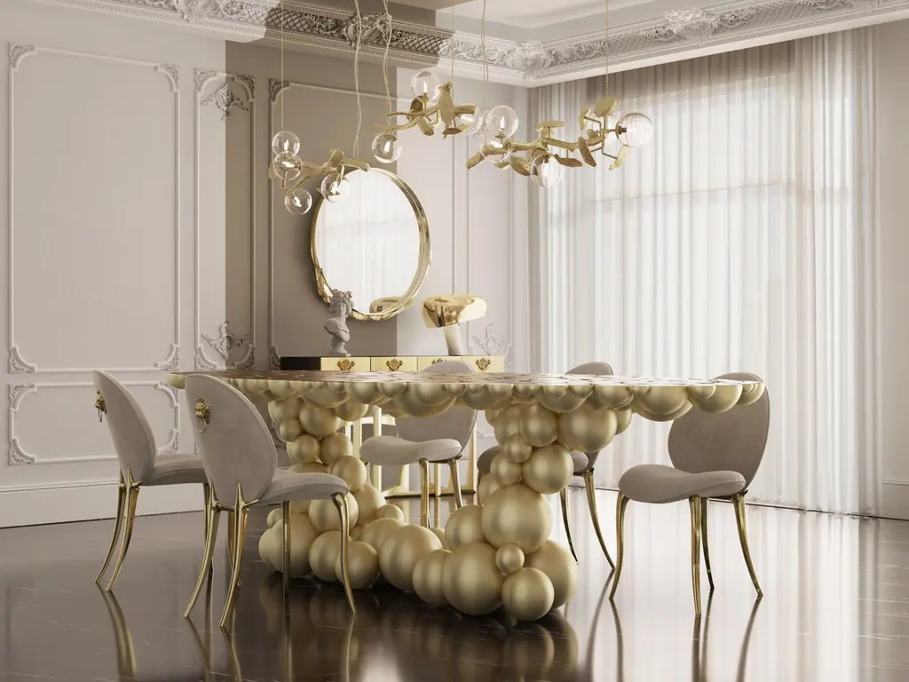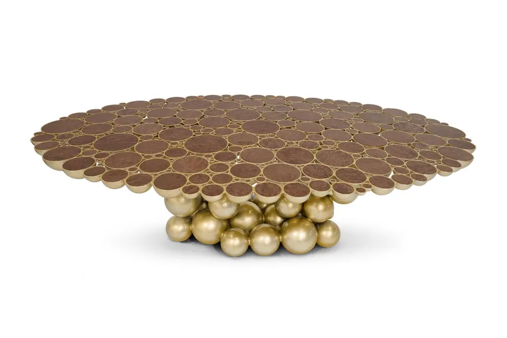 Newton Gold Walnut Dining Table - Hand-Crafted Gold & Aluminum - Boca Do Lobo