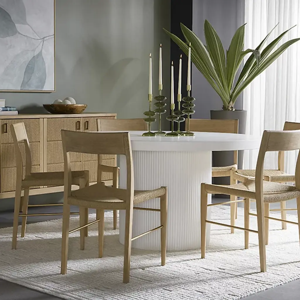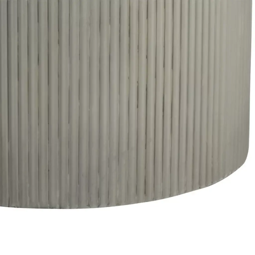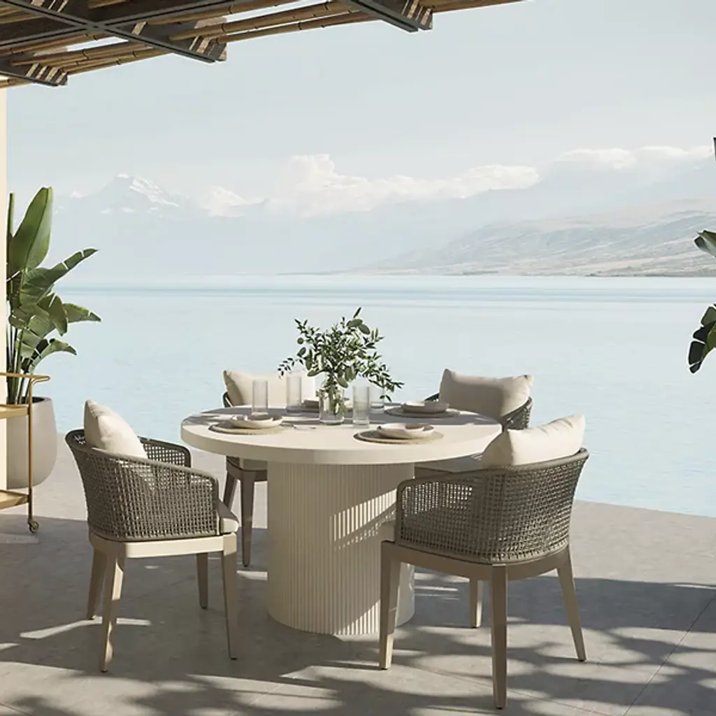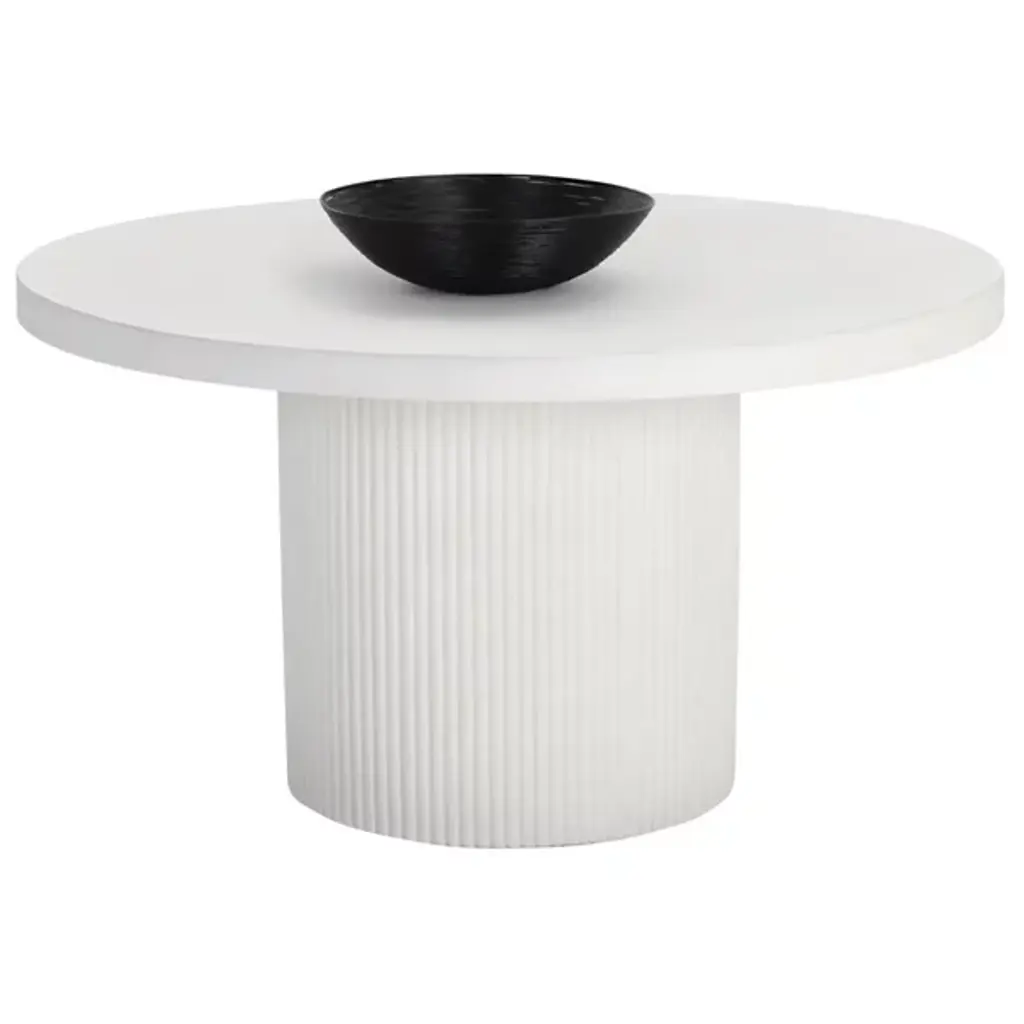 The Nicolette Outdoor Dining Table from Sunpan features a contemporary and refined design, making it a stylish addition to any space. It features an elegant fluted table base that enhances its modern aesthetic. Crafted from a natural concrete mix, each piece is unique, with variations in color, texture, imperfections, surface scratches, and non-structural hairline cracks that are inherent and valued qualities of the material. This table combines durability with distinctive charm and is suitable for indoor and covered outdoor spaces.