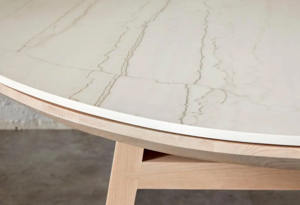 Nieves Oval Dining Table In Stone And Walnut By Autonomous Furniture