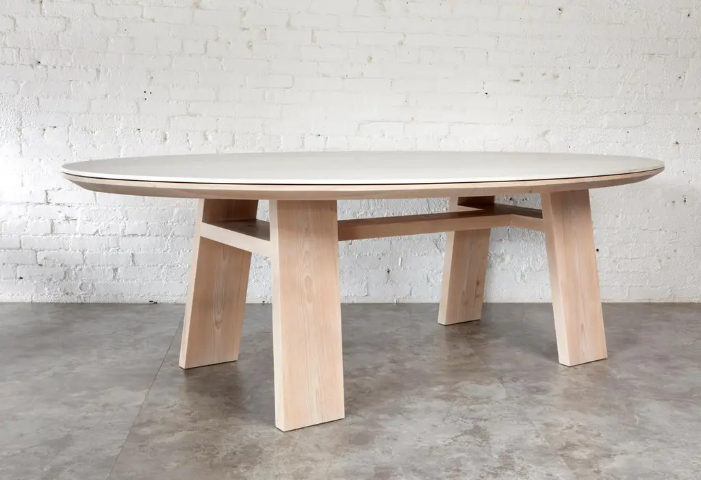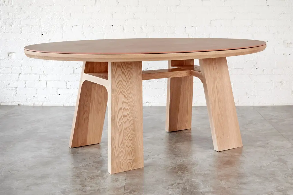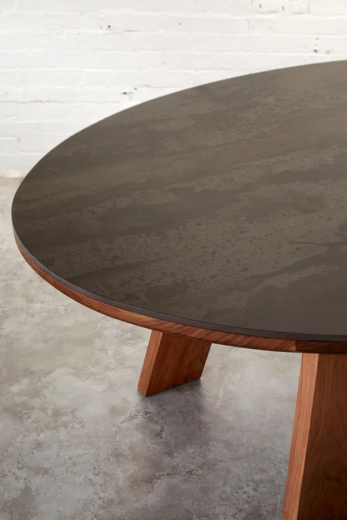 The Nieves table combines natural materials from two elements wood and stone to create an elevated table that stimulates the senses. Starting with solid wood that is sourced as close to home as possible, our designer Kirk Van Ludwig of Autonomous Furniture selected Dekton ultra-compact stone by Cosentino as a carbon neutral product that is heat and stain resistant. The oval shape invites guests to gather intimately around the Nieves table likely drawn to touch the beveled edge of the wood frame beneath the stone tabletop. The leg structure uses wood grain that is deliberately angled to highlight the grain direction showcasing superior craftsmanship.The Nieves table came to be with that in mind, the combination of two natural earthly elements - stone and wood - evoke a sense of calmness and beauty.” – Kirk Van LudwigFeatures:- Contemporary design of an oval dining table contrasting the stone tabletop with natural solid wood leg structure.- Dekton tabletop in Radium set on solid Black Walnut leg structure.- Designed by Kirk Van Ludwig of Autonomous Furniture, seven-time Designer of the Year finalist for Western Living magazine. A modern furniture aficionado.Specifications:- 78" x 47.75" x 29" H. Larger size 96" L available.- Dekton solid surface tabletop. Black Walnut leg structure finished in a natural oil and wax.- Also available in Umber Dekton (terrracotta) and Oak. See additional photos.