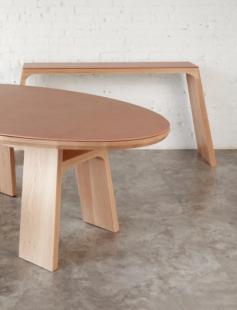 The Nieves table combines natural materials from two elements wood and stone to create an elevated table that stimulates the senses. Starting with solid wood that is sourced as close to home as possible, our designer Kirk Van Ludwig selected Dekton ultra-compact stone by Cosentino as a carbon neutral product that is heat and stain resistant. The oval shape invites guests to gather intimately around the Nieves table likely drawn to touch the beveled edge of the wood frame beneath the stone tabletop. The leg structure uses wood grain that is deliberately angled to highlight the grain direction showcasing superior craftsmanship.The Nieves oval table, the focal point of the Nieves collection - it was amidst the crisp mountain air and the whisper of the wind that the name Nieves was born, a homage to the legendary Virgen de las Nieves, the patron saint of Sierra Nevada.The Nieves table came to be with that in mind, the combination of two natural earthly elements - stone and wood - evoke a sense of calmness and beauty” – Kirk Van Ludwig.Features:Contemporary design of an oval dining table contrasting the stone tabletop with natural solid wood leg structure.Dekton tabletop in Umber set on solid natural oak leg structure.Designed by Kirk Van Ludwig, nine-time Designer of the Year finalist for Western Living magazine. A modern furniture aficionado.Specifications:78" x 47.75" x 29" H. Larger size 96" L available.Dekton solid surface tabletop. Oak leg structure finished in a natural oil and wax.